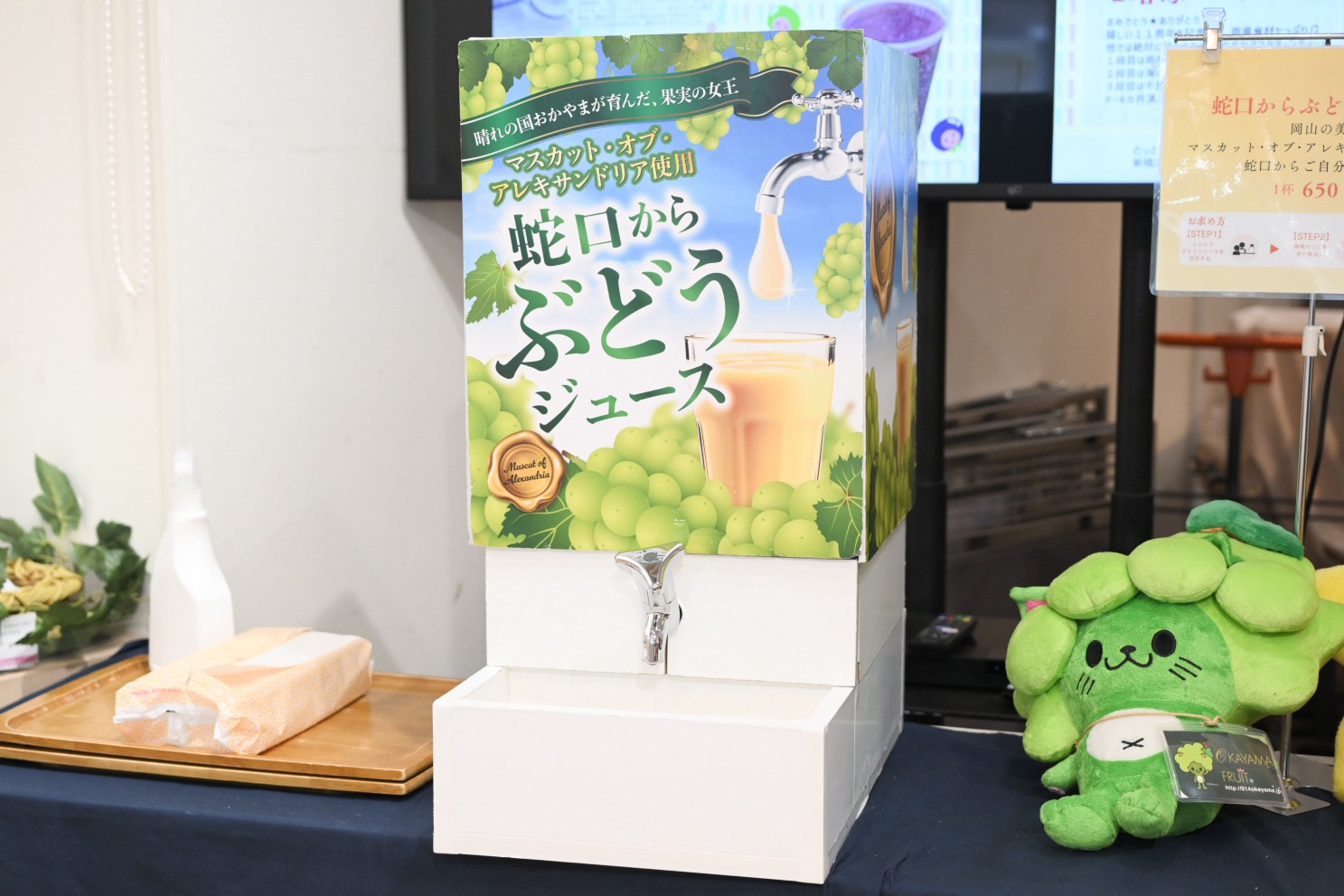 なんと、蛇口をひねると“果物の女王”と呼ばれる岡山県産「マスカット・オブ・アレキサンドリア」の果汁70%配合ジュースが出てくるんです!