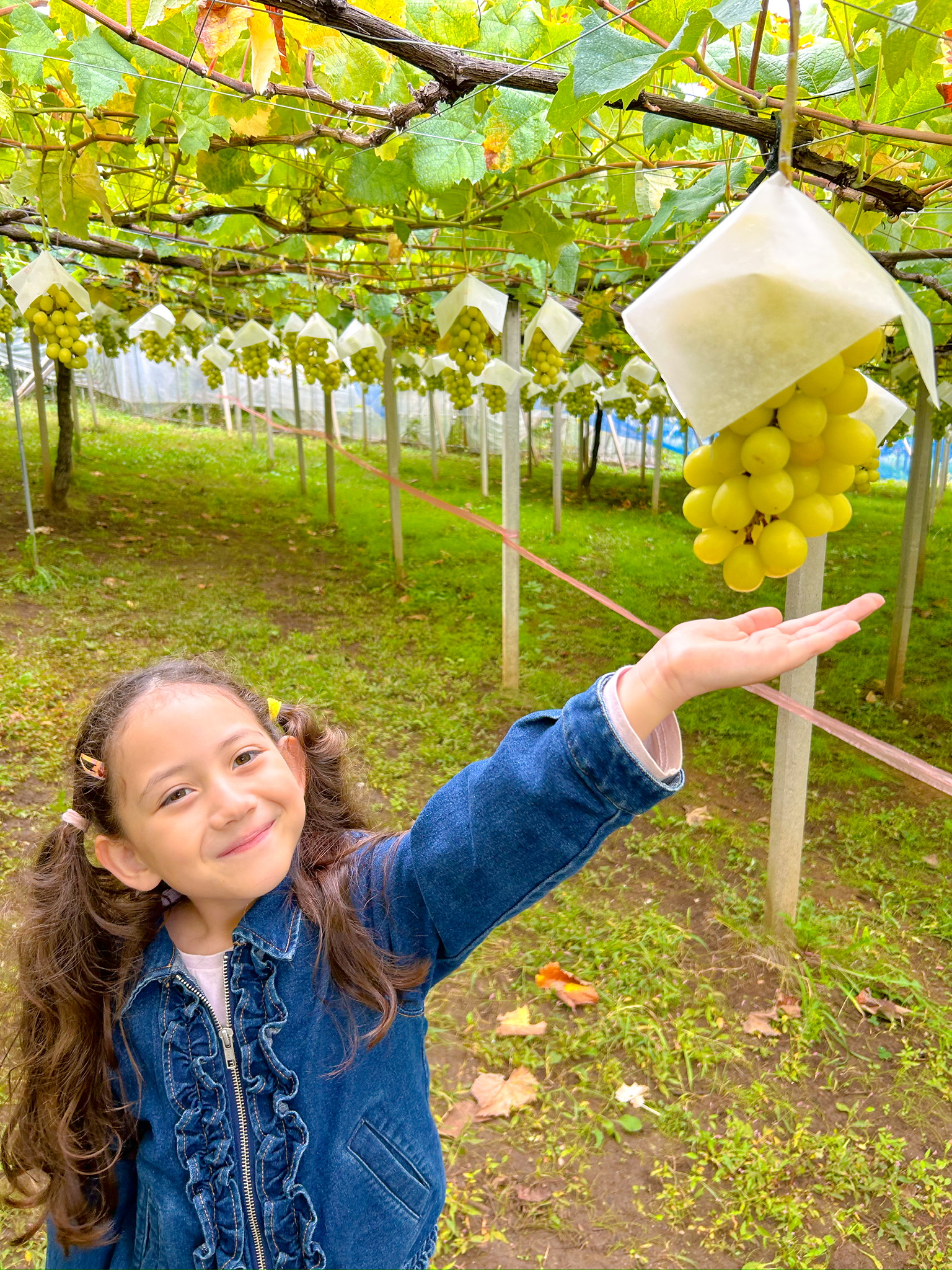 ここは子どもたちが実際に本物にふれ、手を使って感じることのできる農場で、シャインマスカットや巨峰狩り、魚のつかみ取り体験やピザ作りなどが楽しめます。