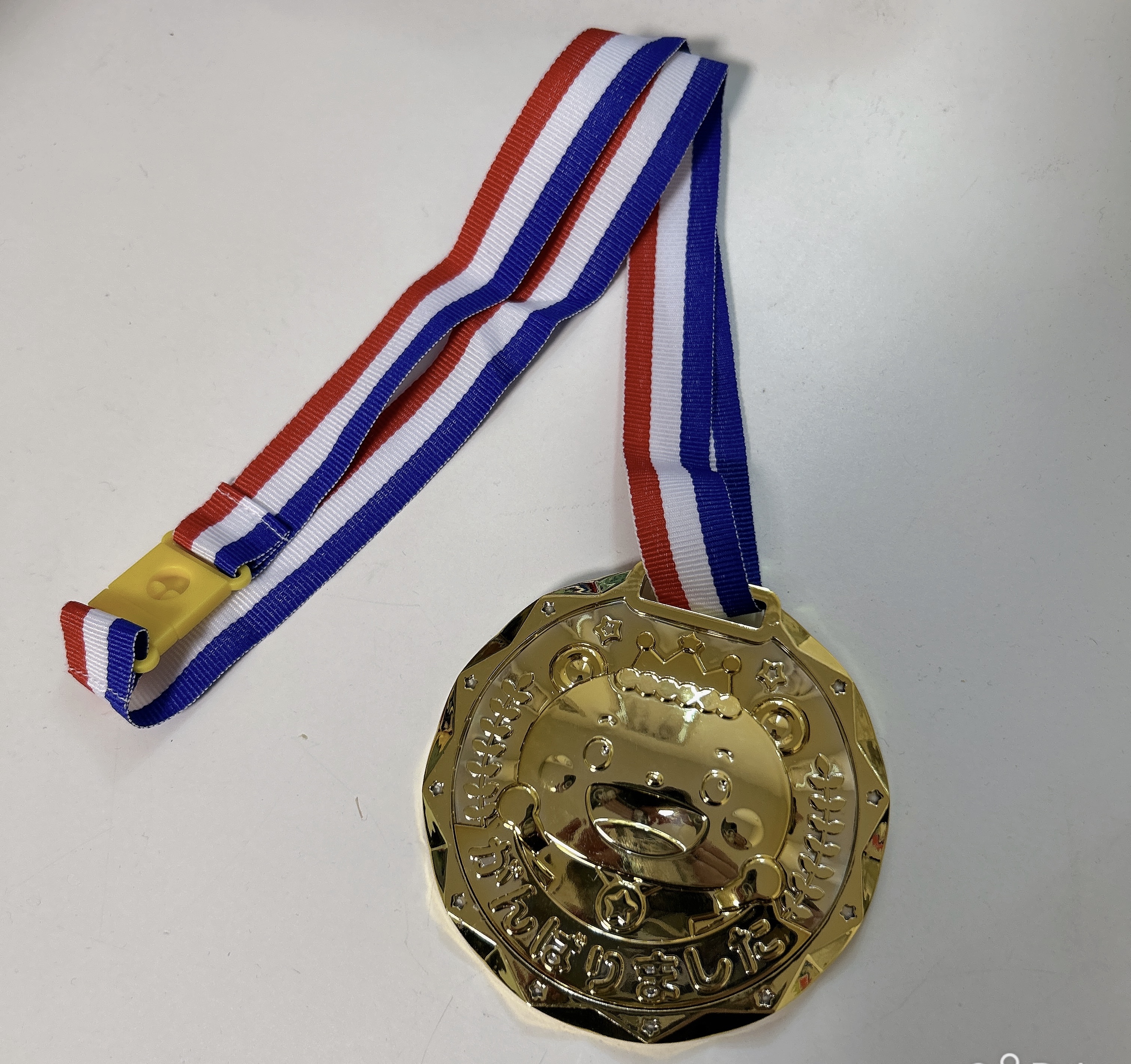 先生からたくさん頑張ったね。と貰った金メダルを見て、ニヤニヤ。