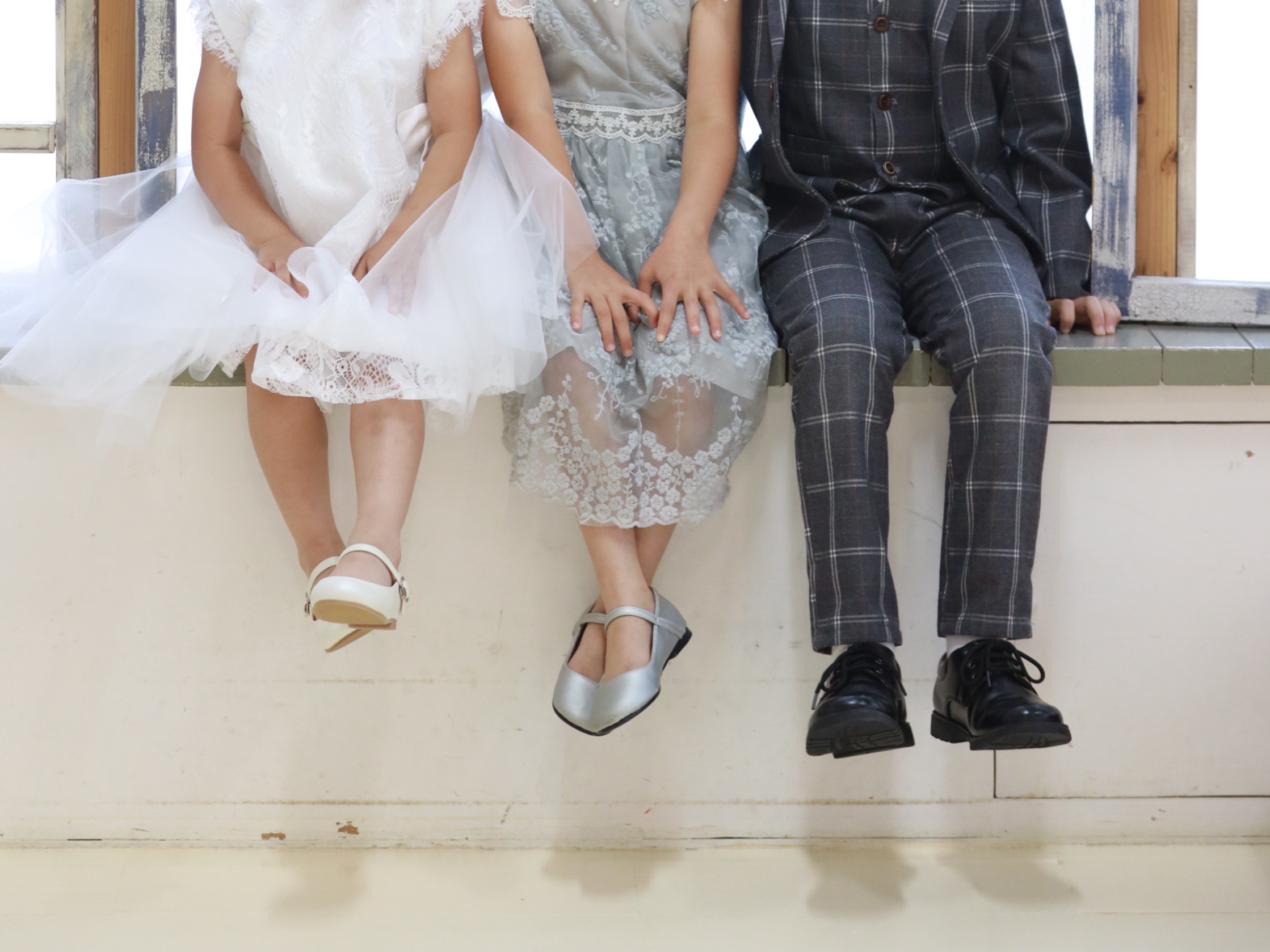 年が明けて春が過ぎた頃、スタジオで着物と洋装をレンタルして写真撮影。予約も取りやすく、子どもたちが日焼けする前に撮れたのがよかったです。