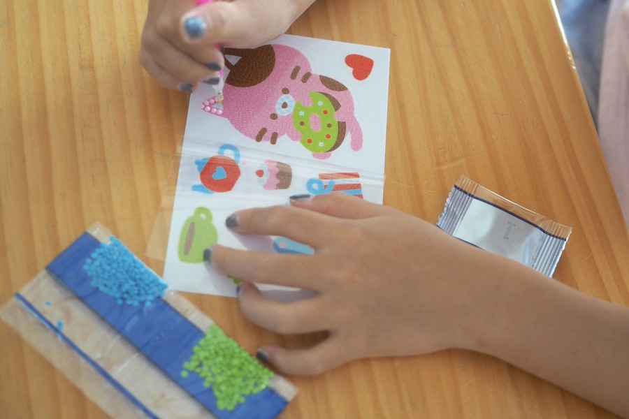 ビーズを貼り終わったらシールとして使えるので、身の回りの文房具やお友達へのお手紙に貼って楽しんでいました。