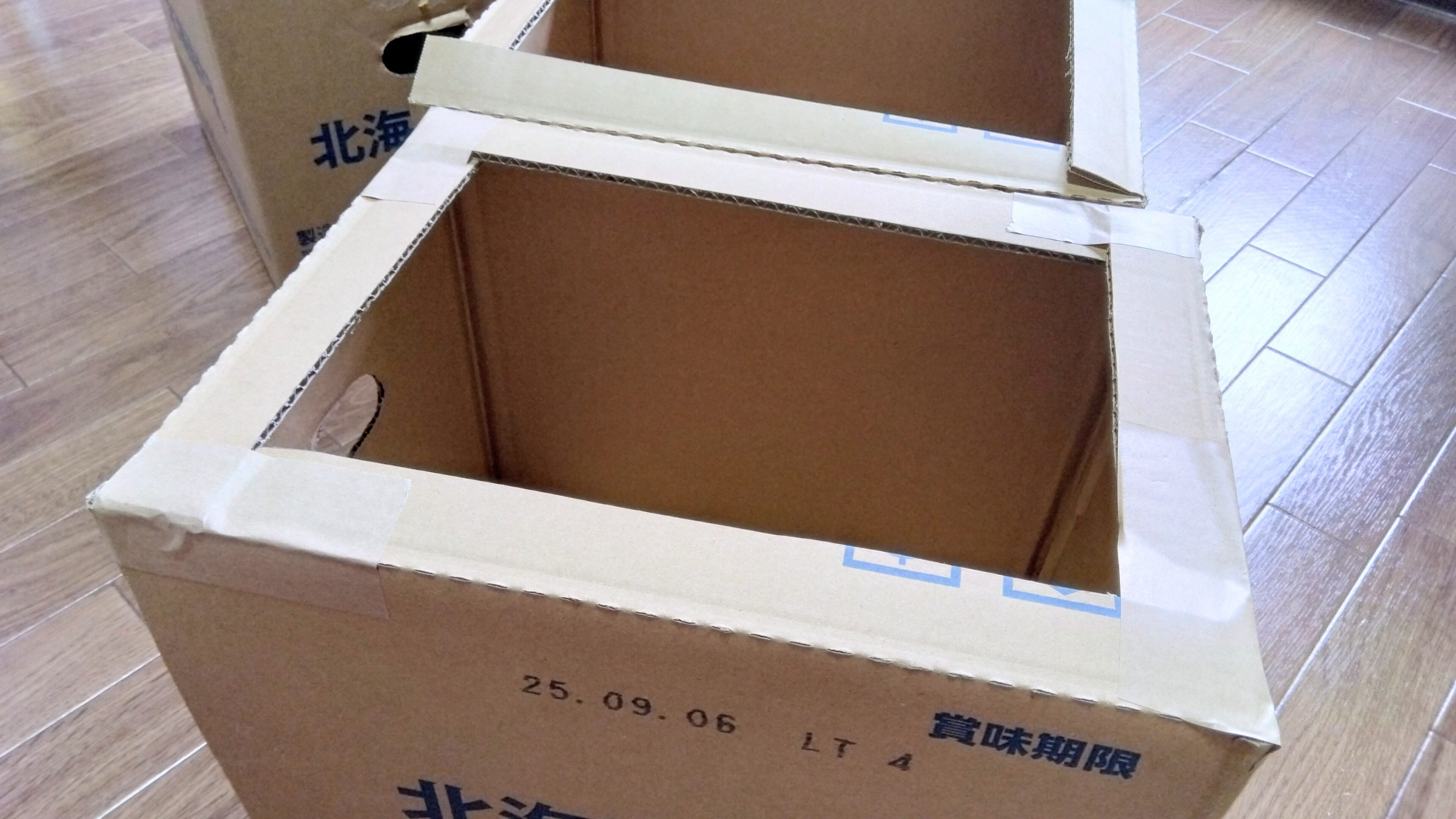 (3)段ボールの口を互い違いになるように組み立てれば完成。