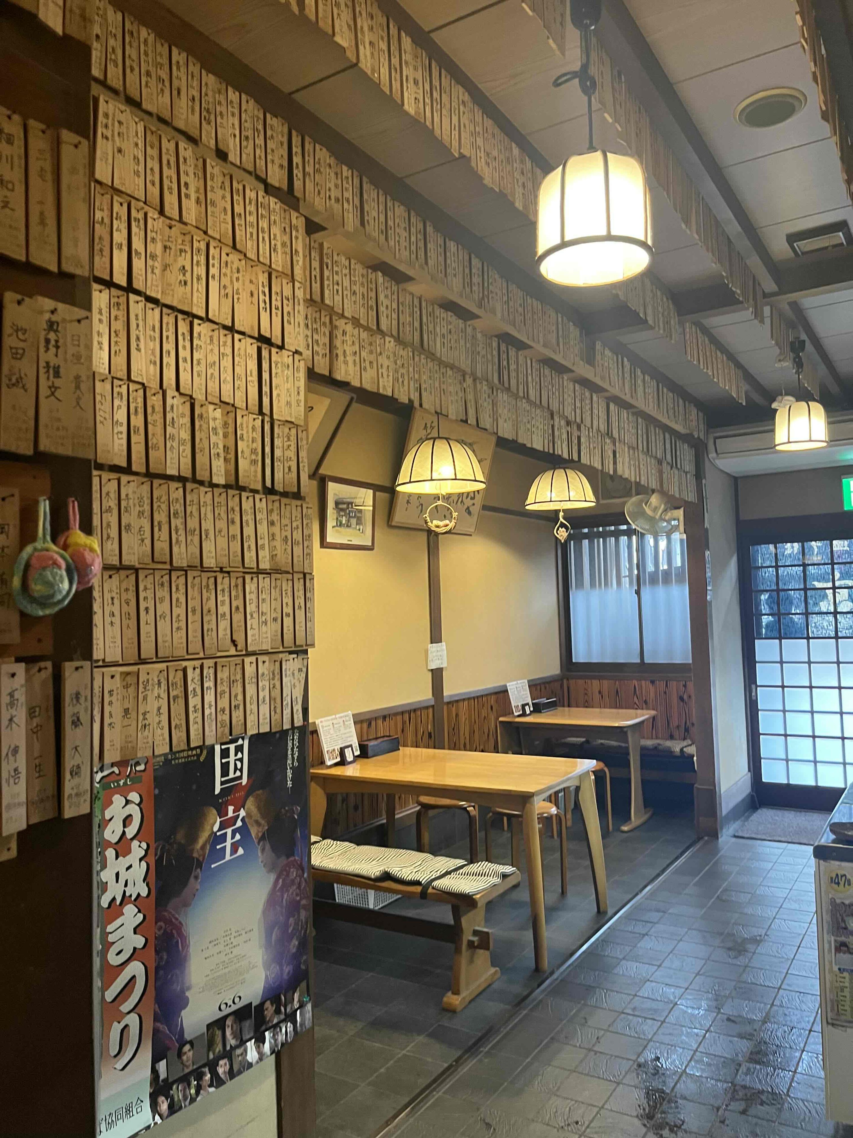 店内には今までに「皿そばの証」をもらった人の名前と食べた皿の数が書かれた札がたくさん飾られています。
