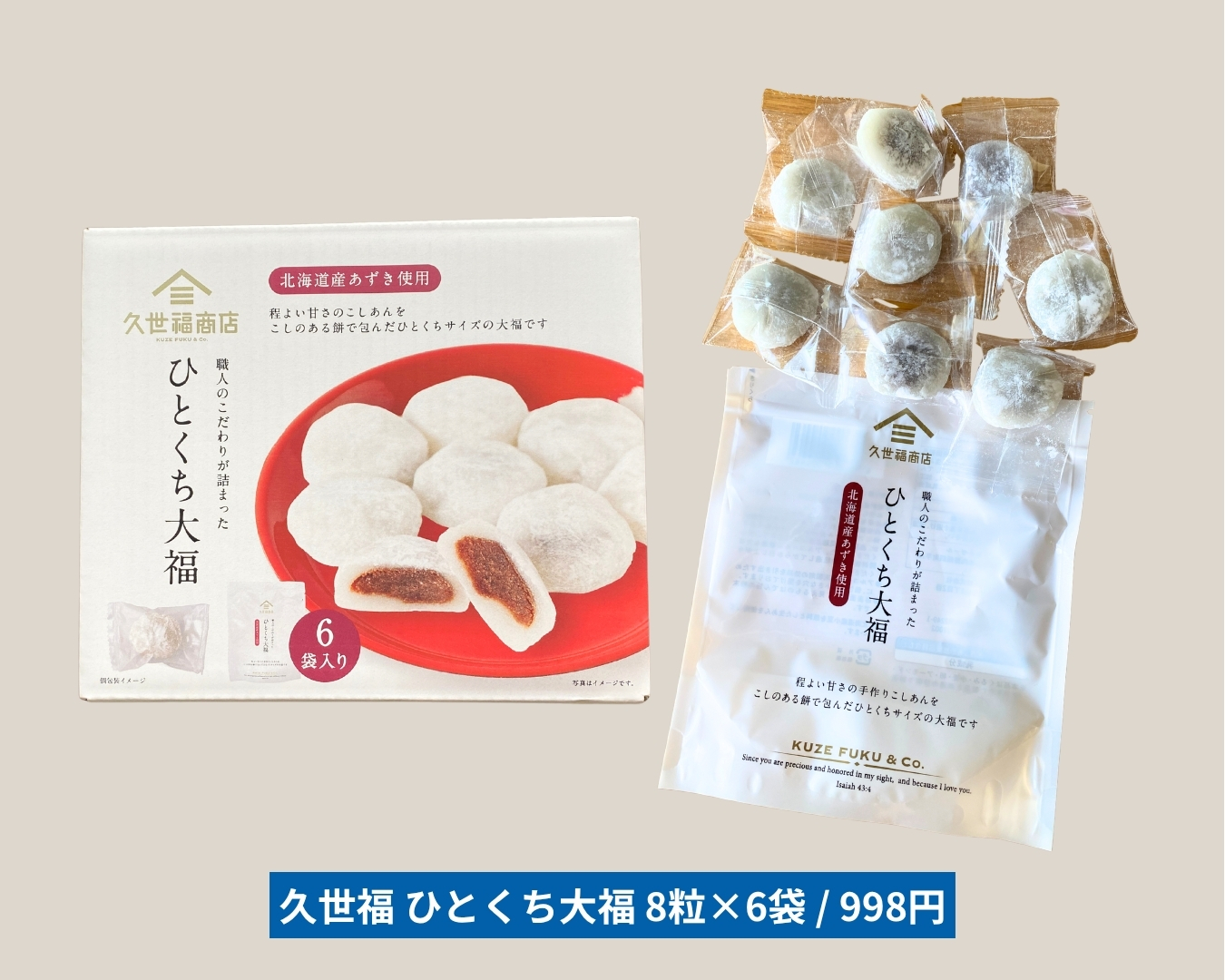 和スイーツ好きにおすすめ!「久世福 ひとくち大福」(8粒×6袋入り/998円)