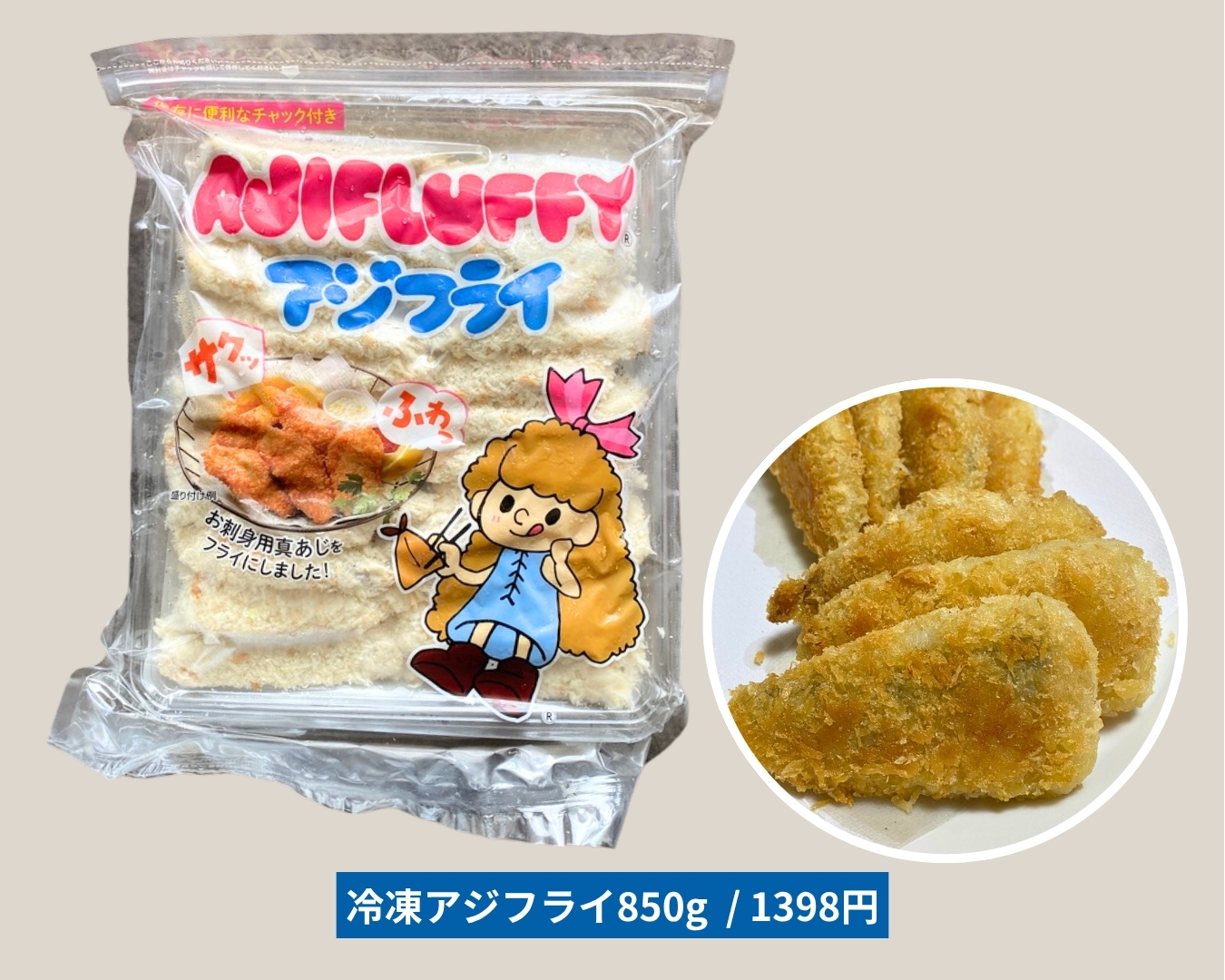 骨取り済みで子どもも安心!「冷凍アジフライ」(850g/1358円)