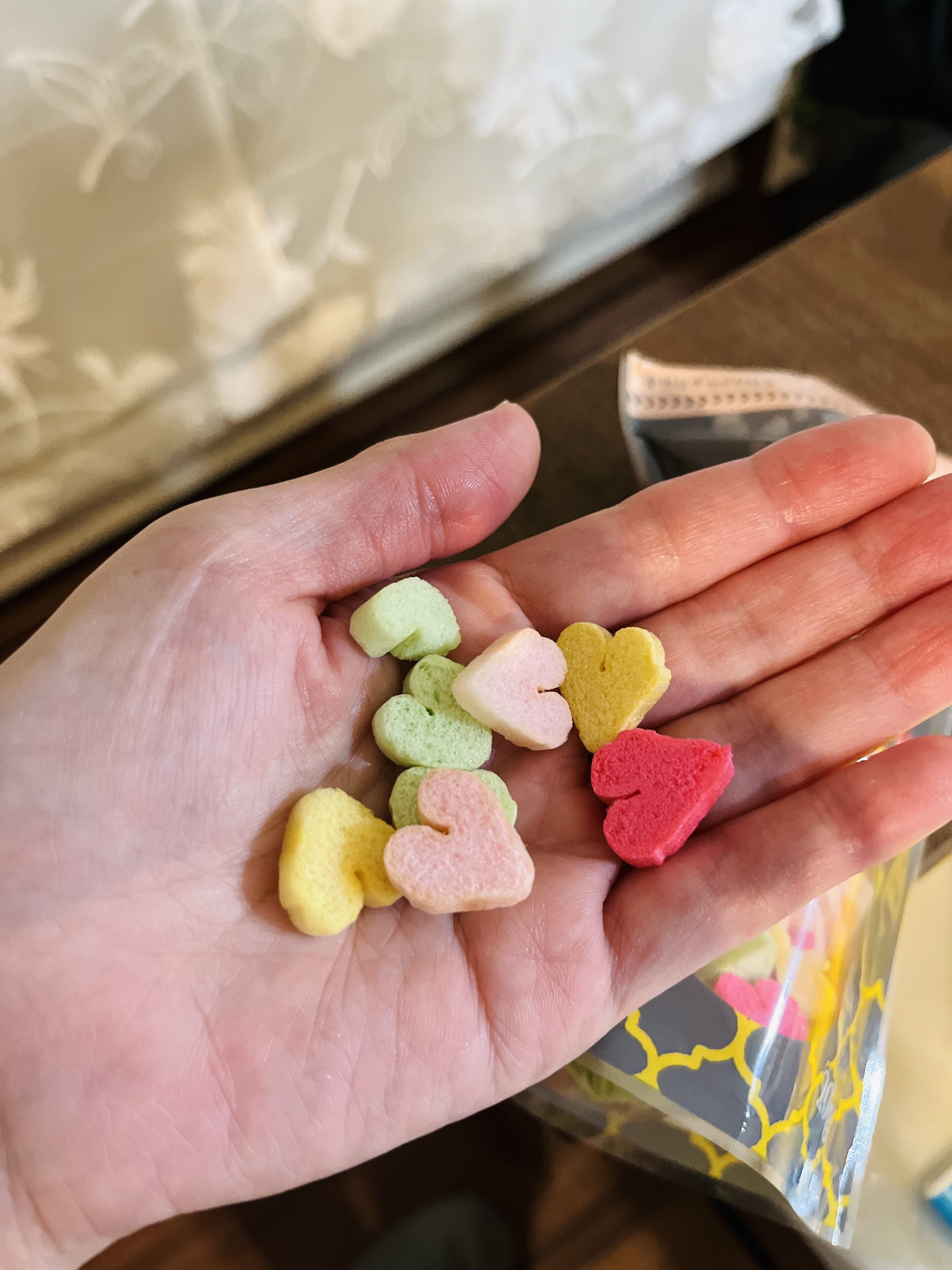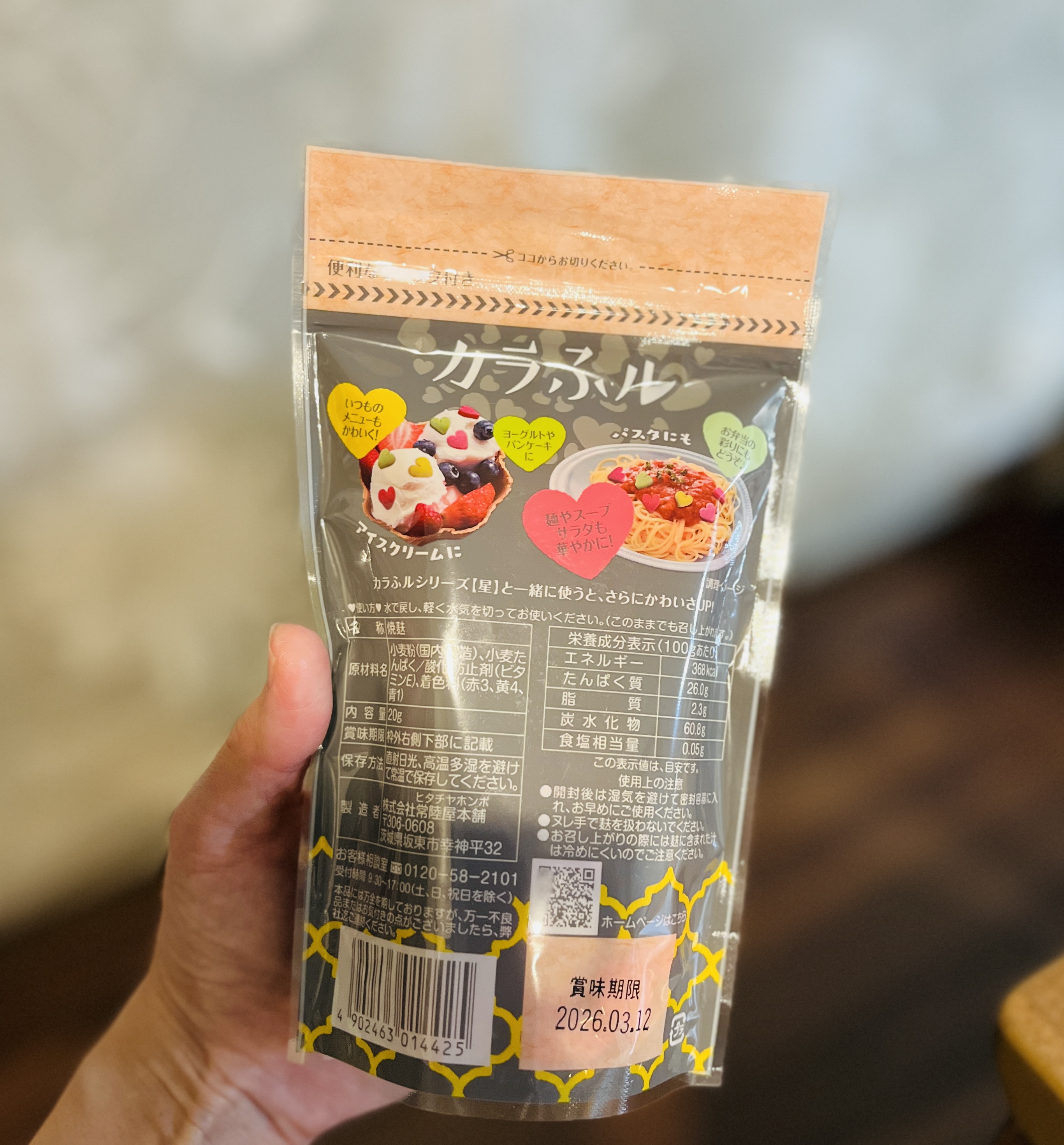最近スーパーで見かけて衝動買いしたもので、常陸屋本舗さんの【カラふル ハート】 20g。