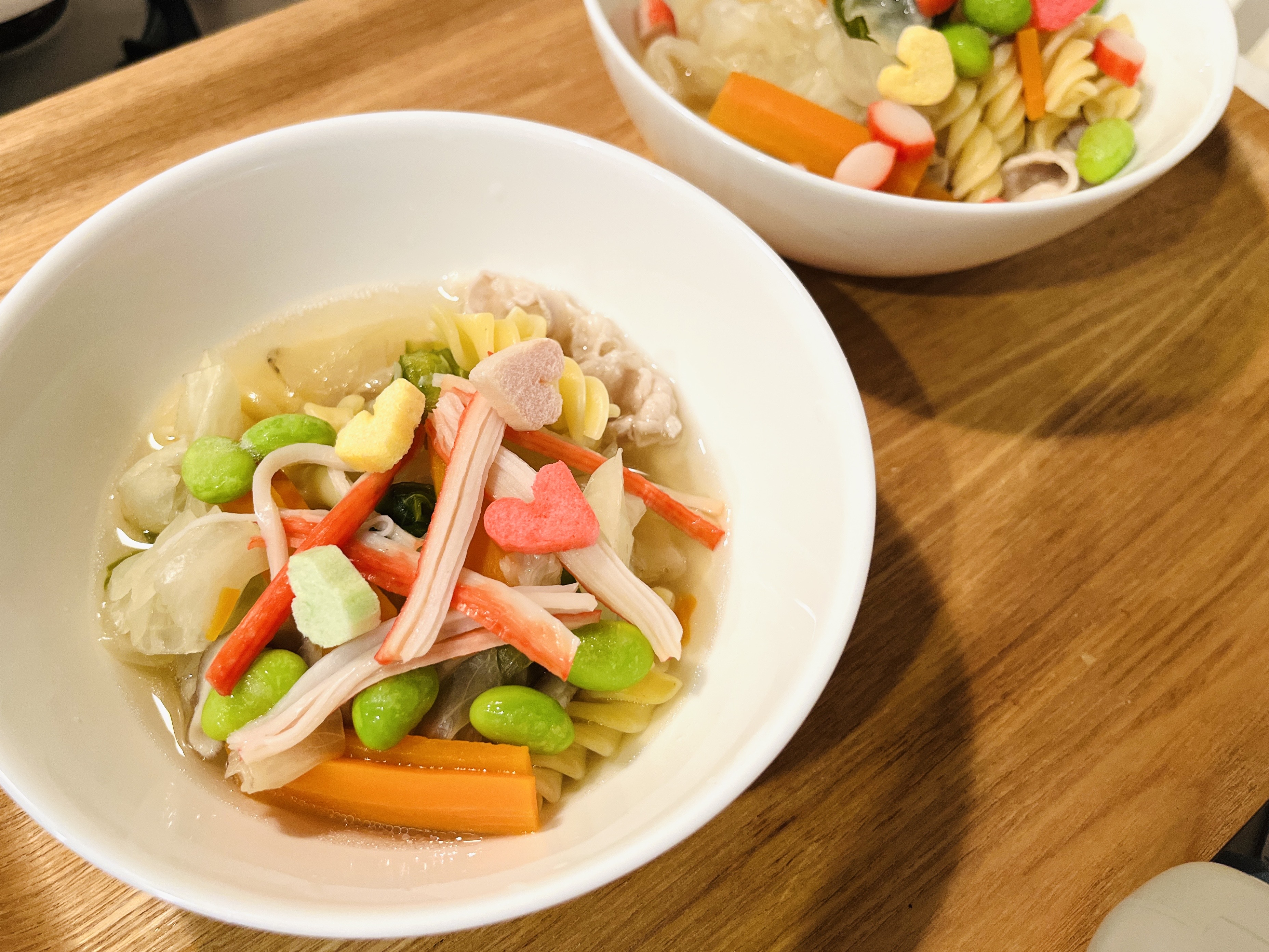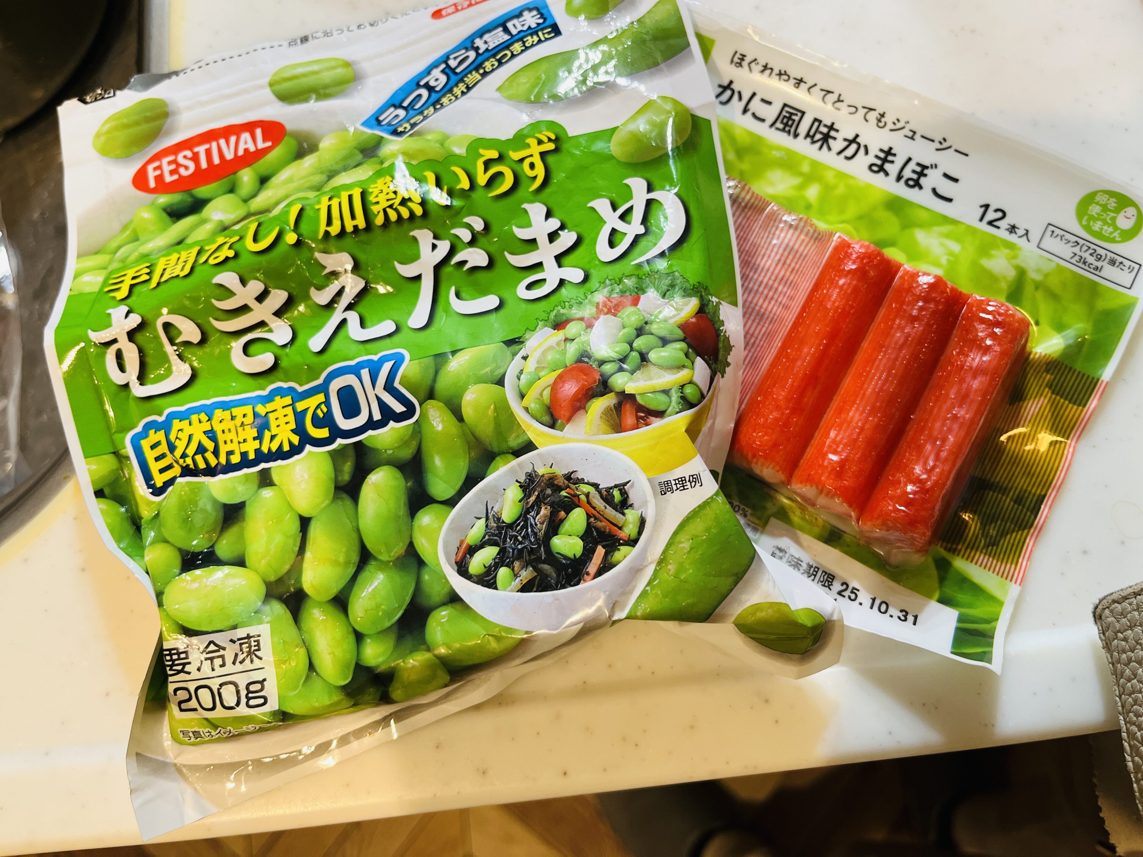 ただ、同じ緑でも枝豆は食べてくれるので、緑の彩りには枝豆を採用。