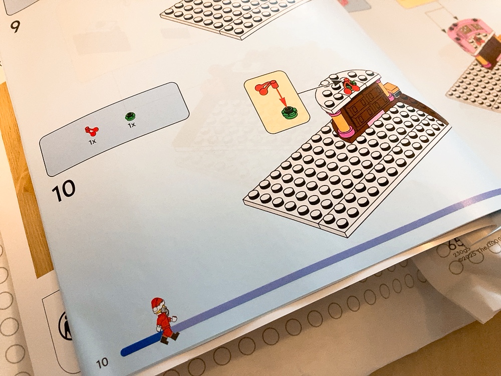 そんなこんなで急遽我が家にやってきた、レゴセット。もう早速Twinsが食い付いて大喜び!説明書もクリスマス仕様で可愛く、まずはサンタさんから組み立てるところも、子供心をわかってますね。