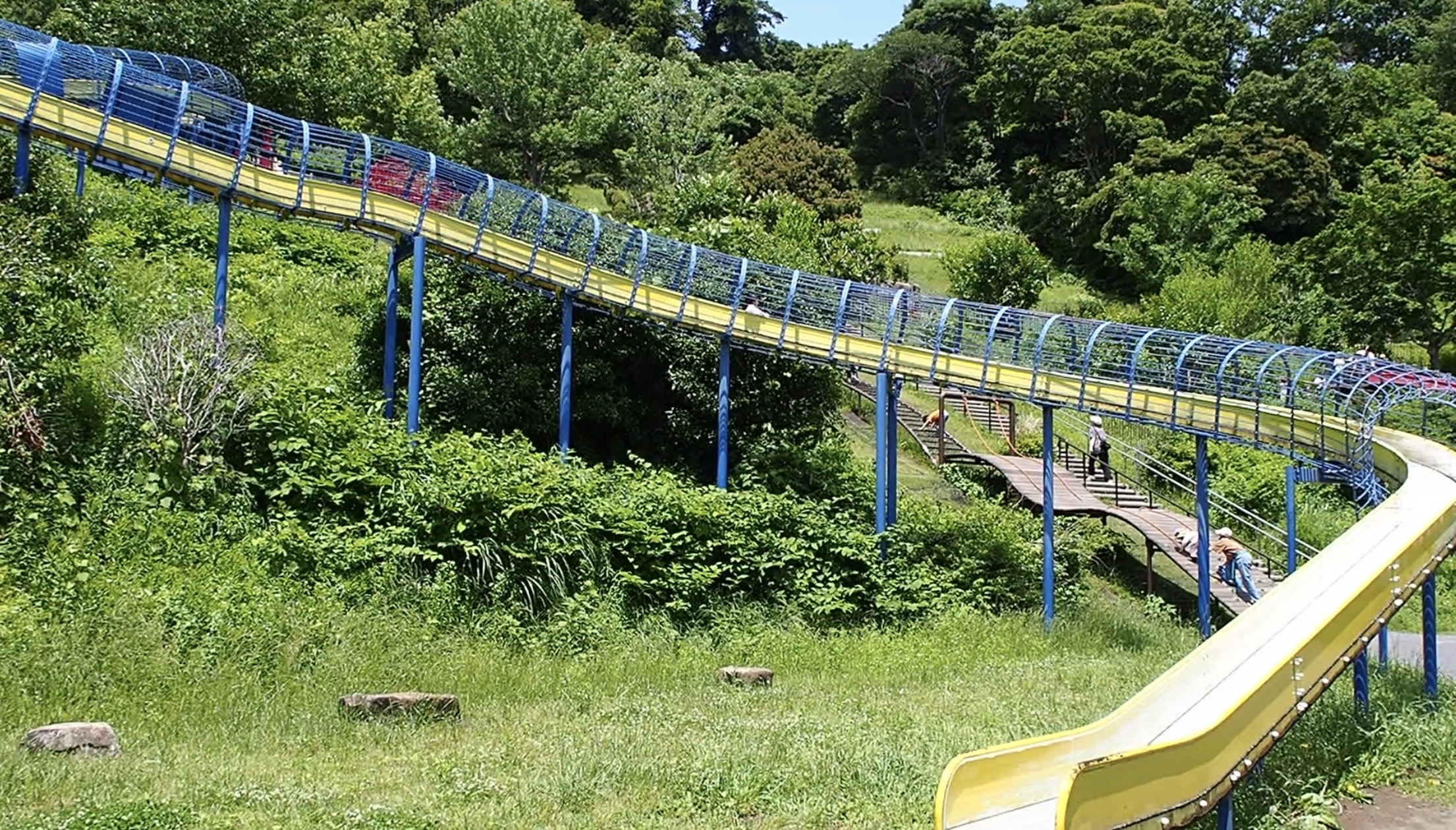 自然公園が併設していて、なんと横浜市内最大級のローラー滑り台(100m)があります。