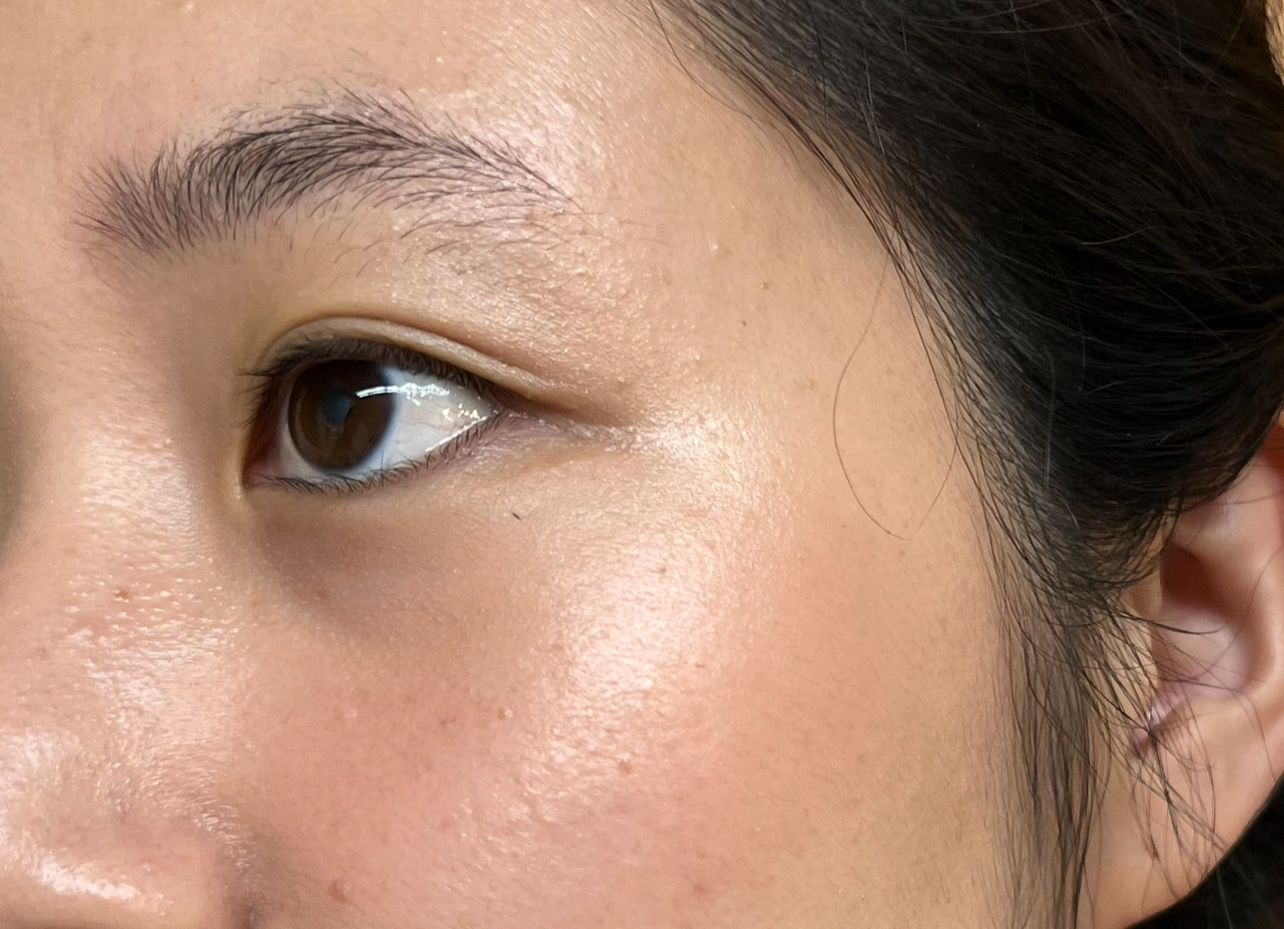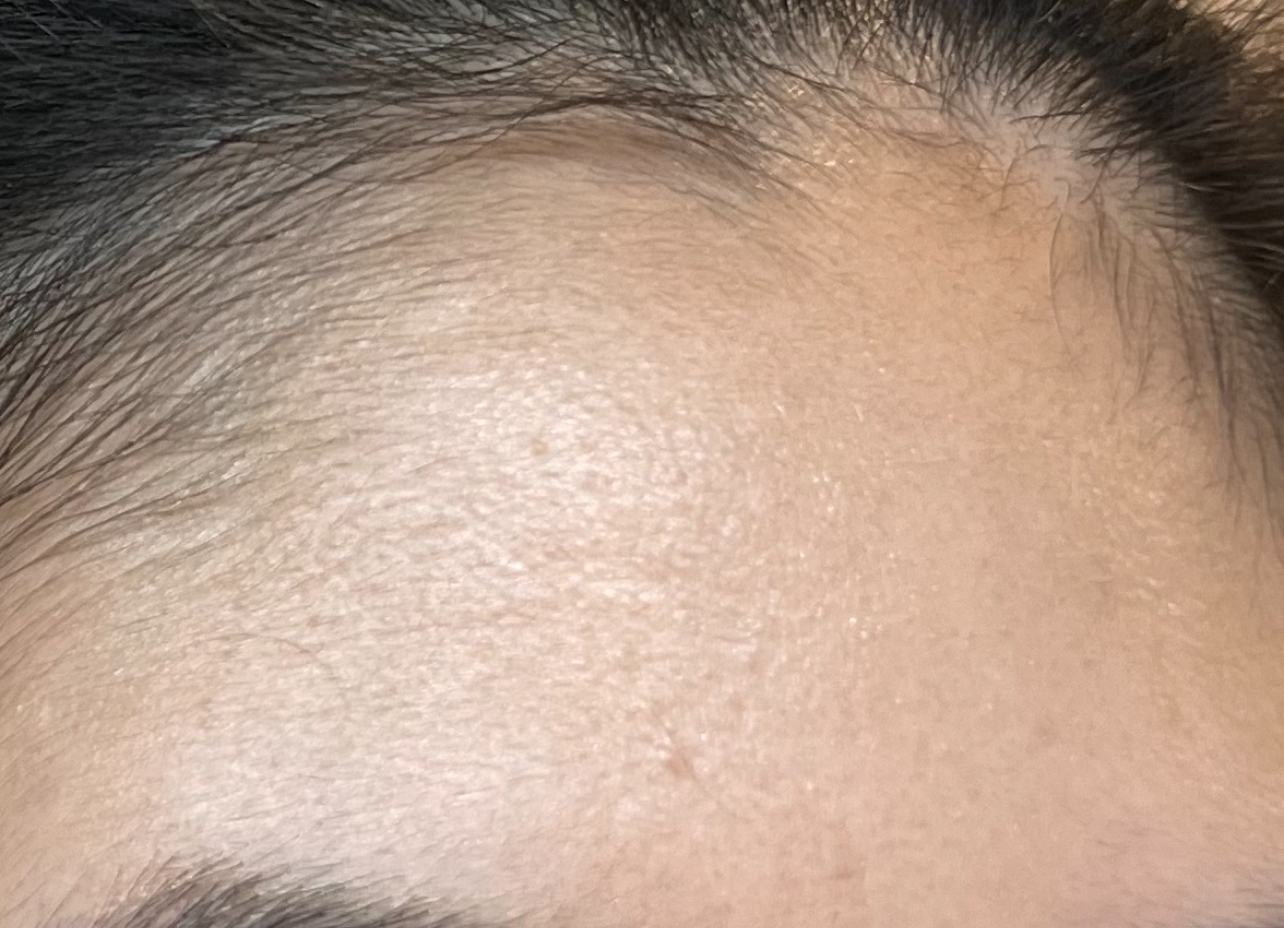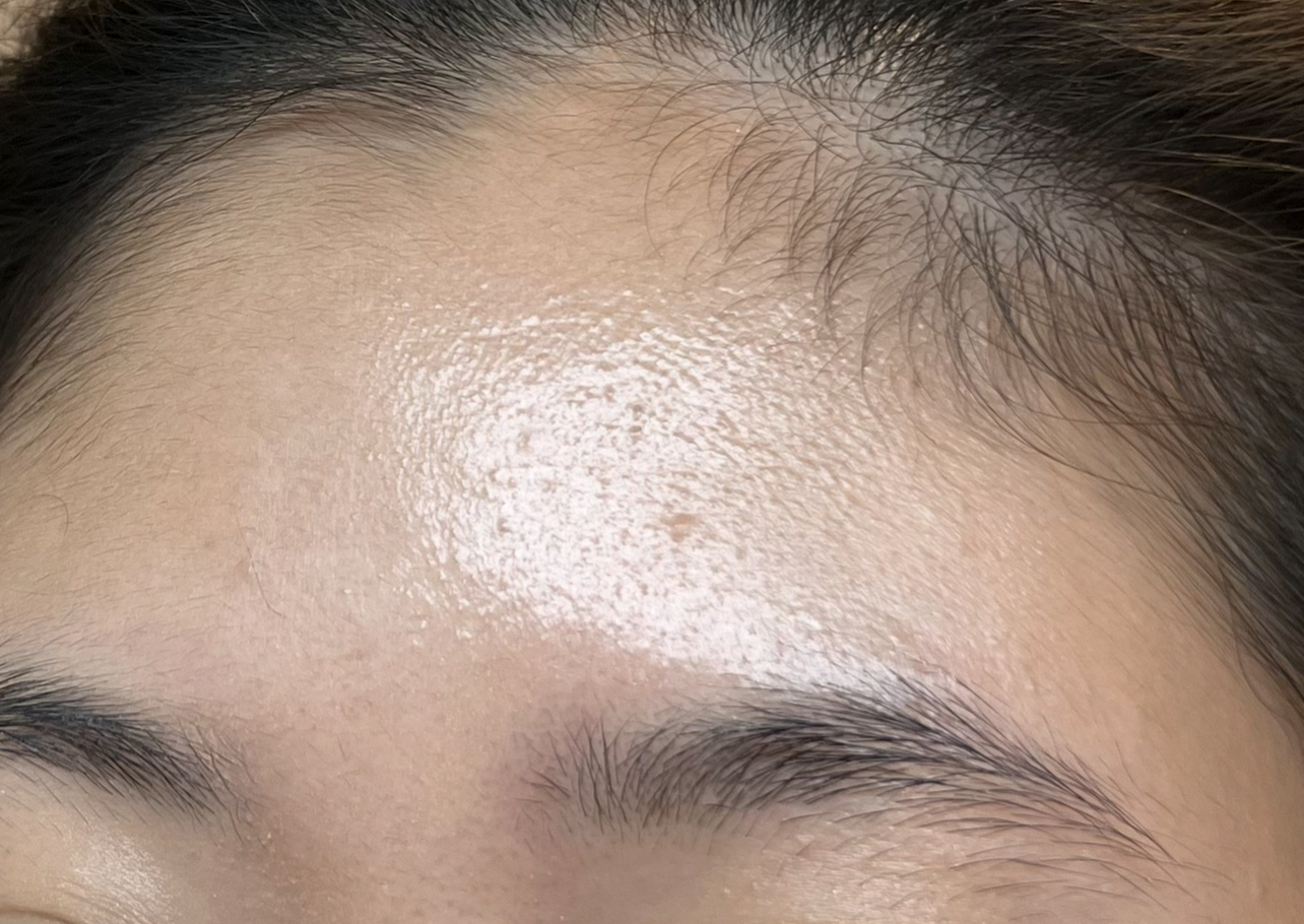 画像は上が「シルク」をつけていないおでこ、下がつけているおでこです。
