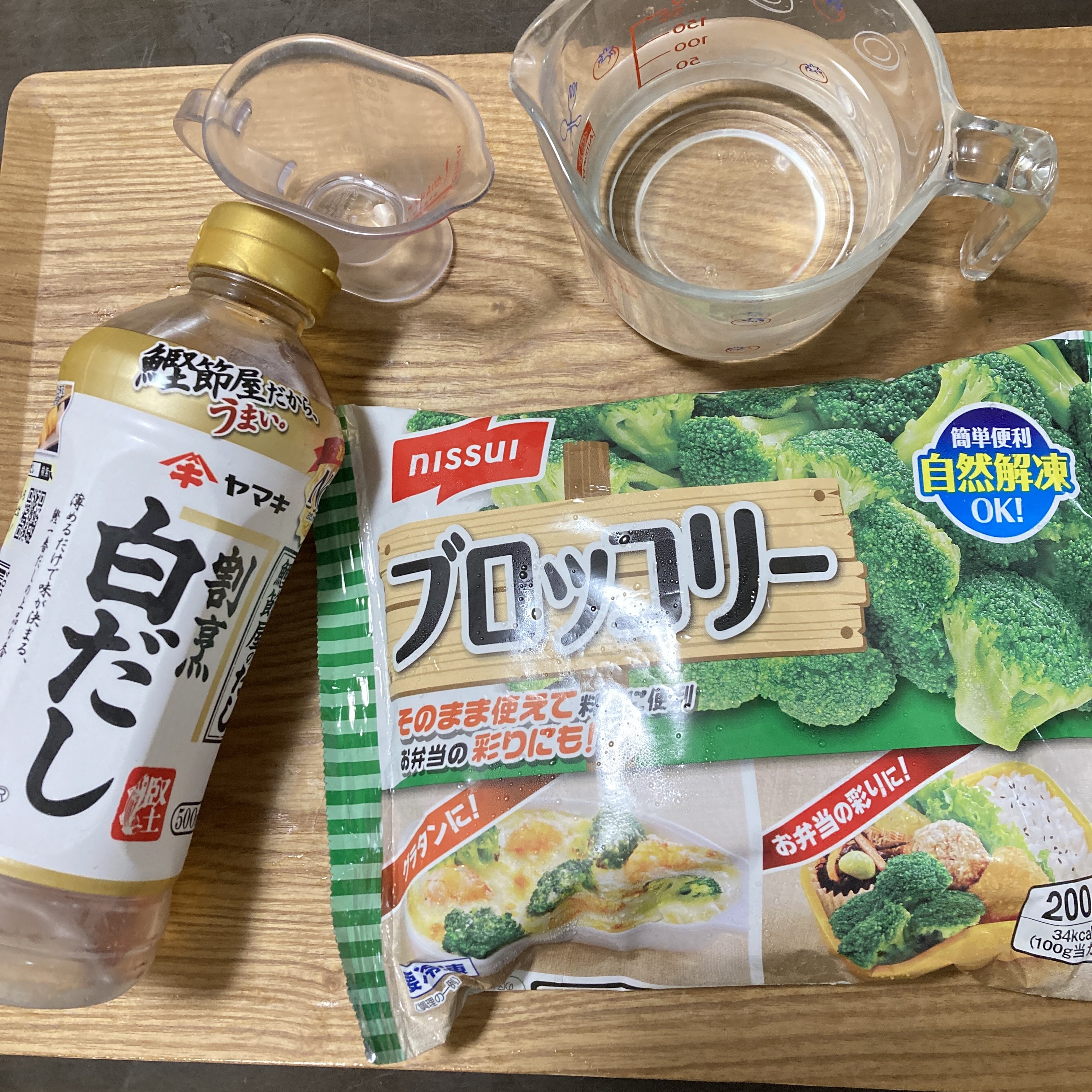 なんと、水と白だしを合わせてブロッコリーを入れるだけ。