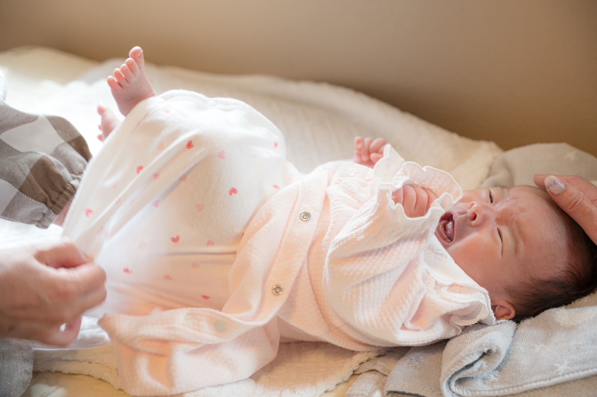 まるで「おむつ替え反対運動」をしているかのような勢いで、油断するとおむつ台から転げ落ちそうになるので、こちらも毎回全神経を使います。長女・次女の時にはなかった「おむつ替えの真剣勝負」とも言うべき状態です。