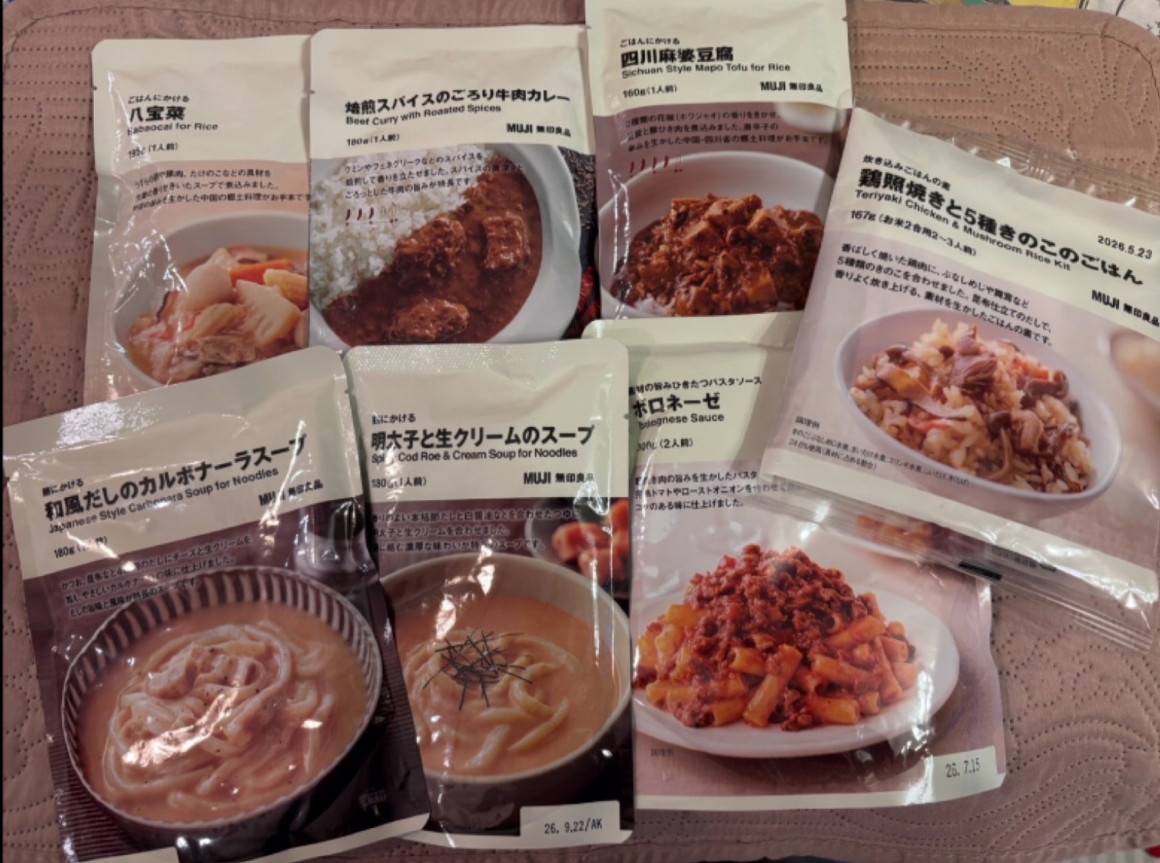 ご飯にかけるだけでOKのカレーや、中華丼、麻婆豆腐、白米に混ぜて炊飯器で炊くだけの混ぜご飯の素や、うどんにかけるだけのうどんスープ類。
