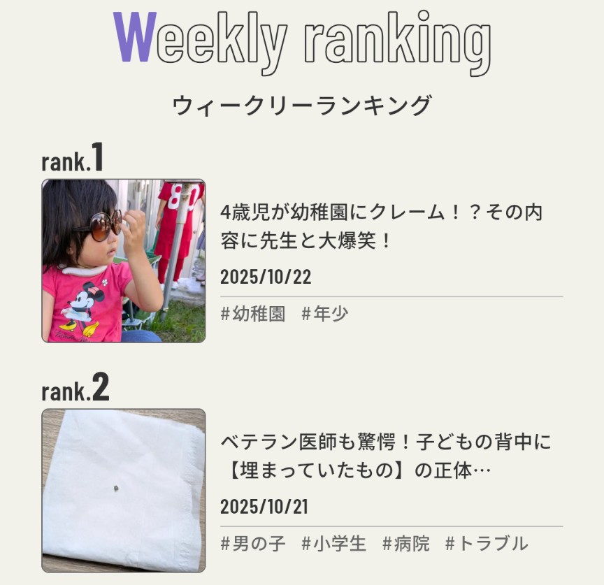 毎日&ブロガーズさんたちの更新記事を楽しみにしているのですが、今回私の執筆した記事がたまたまウィークリーランキング1位&2位に入っていることに気づきました!本当にありがとうございます。