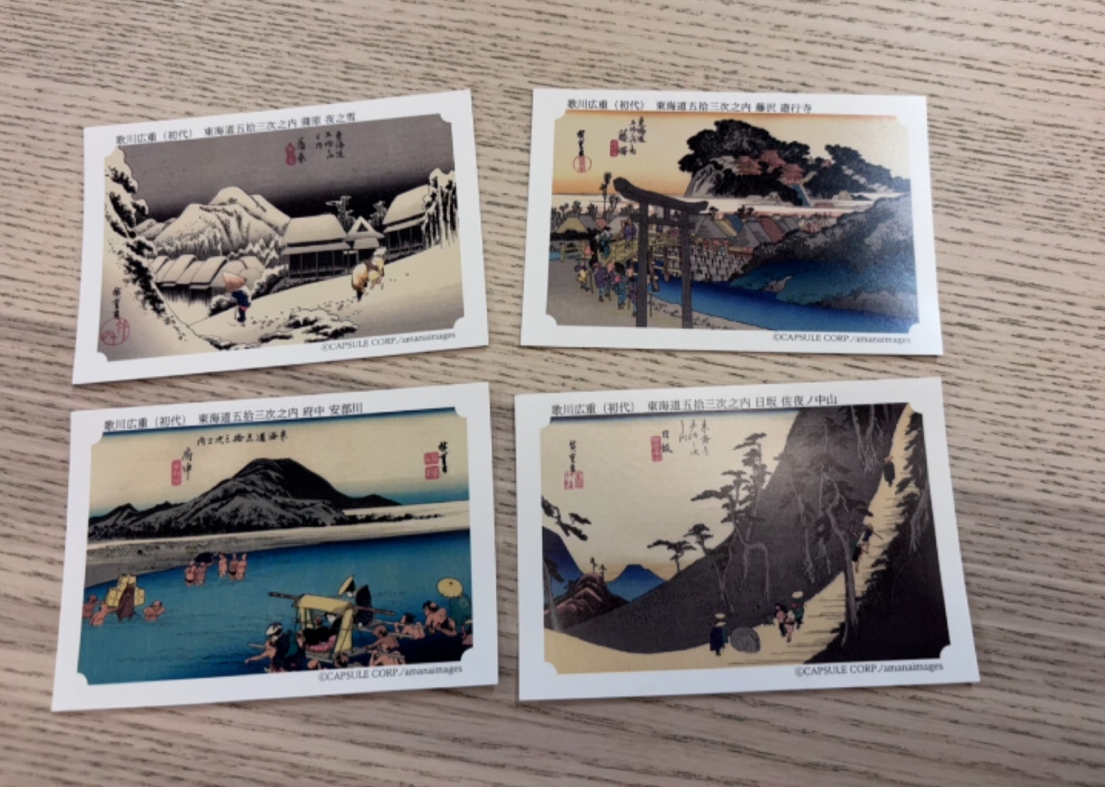 「東海道五拾三次」シリーズから徐々に種類を増やし、これまでには次のような名画シリーズが封入されていたそうです。
