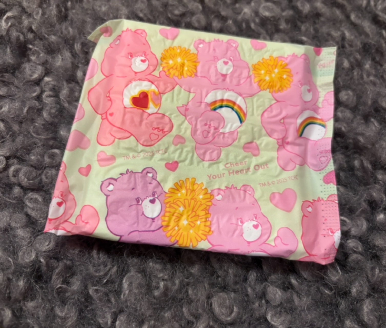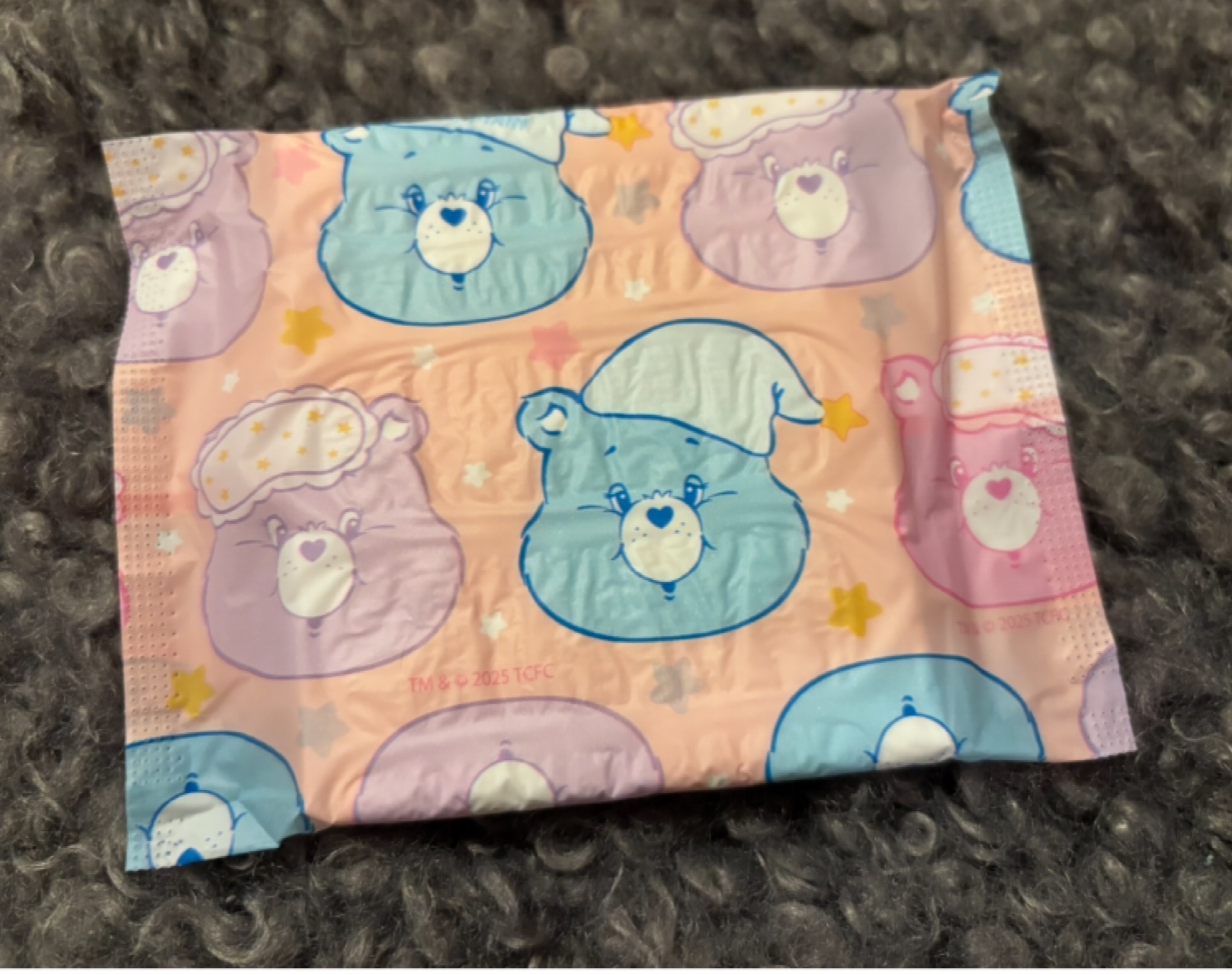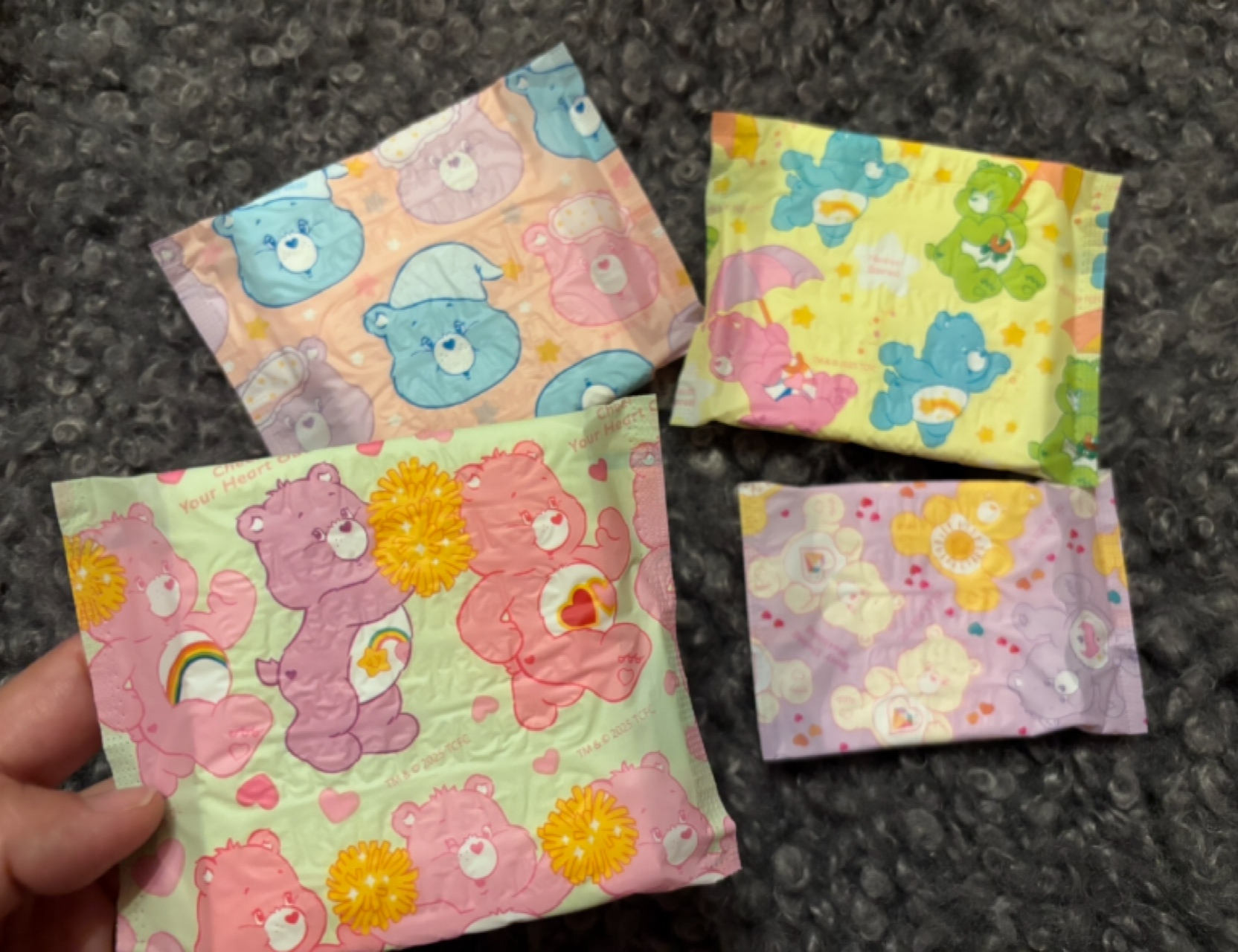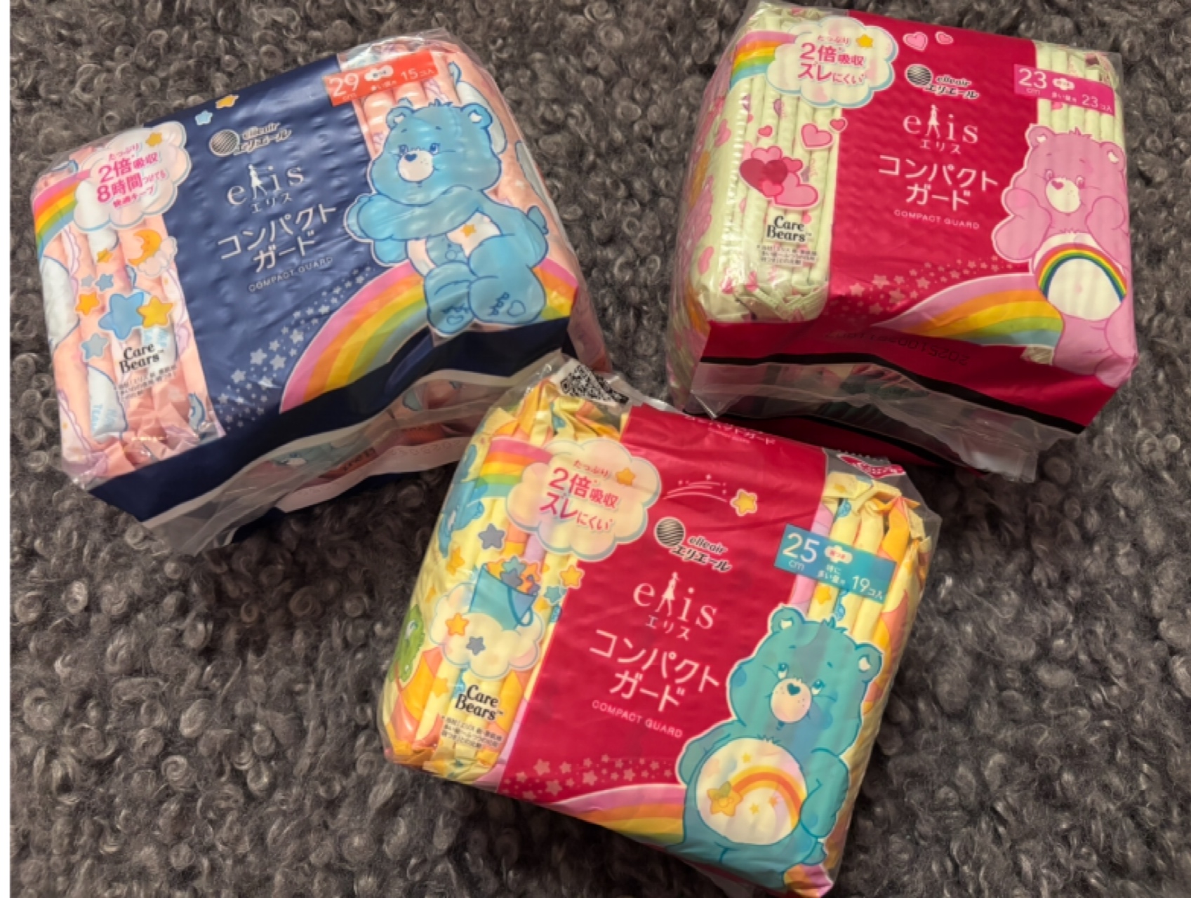 大人気のキャラクター「ケアベア」のプリントがめちゃくちゃ可愛いこの商品は、なんと生理用ナプキンなんです!