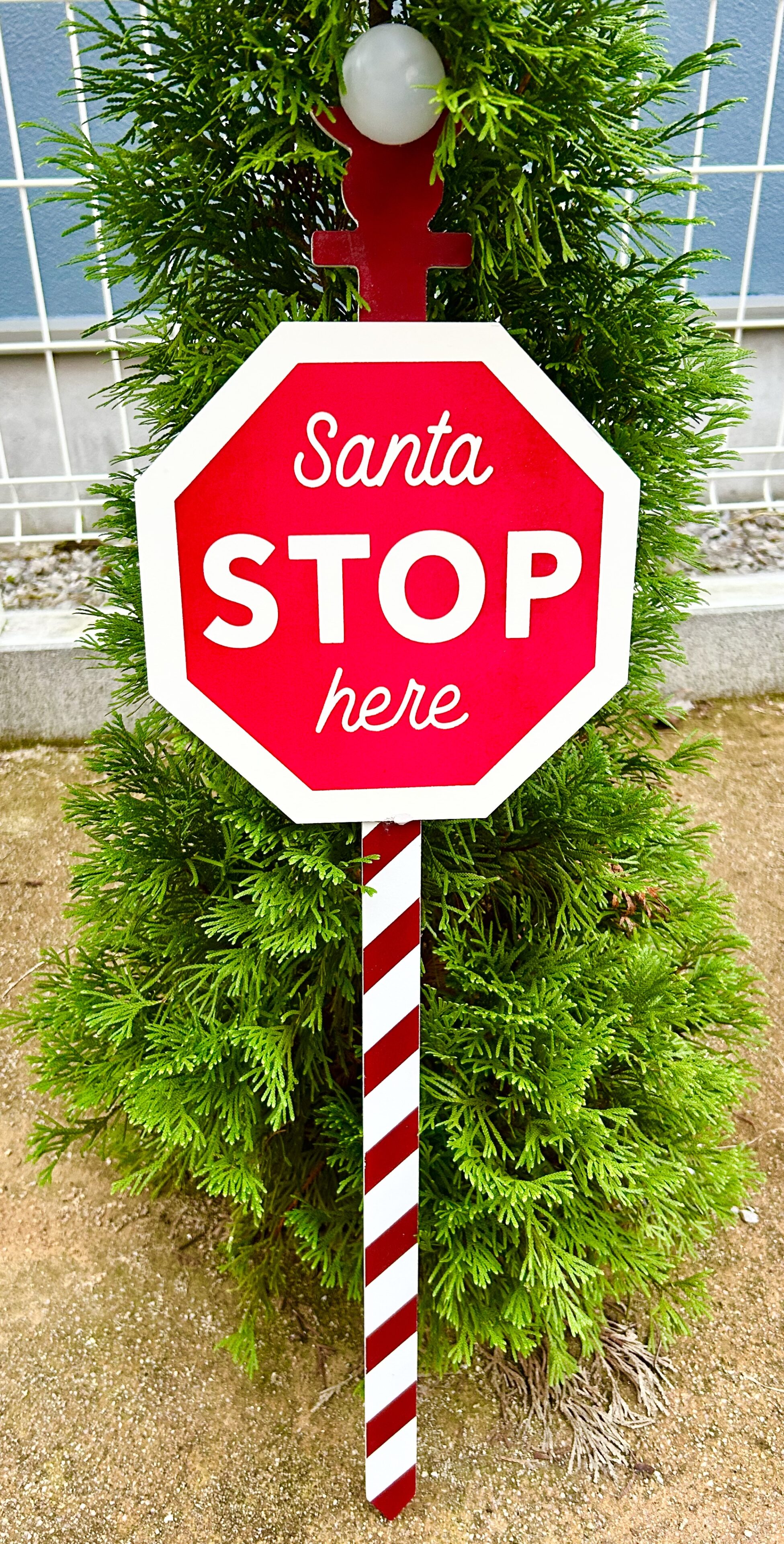 毎年見かける「Santa Stop Here」看板(550円)、