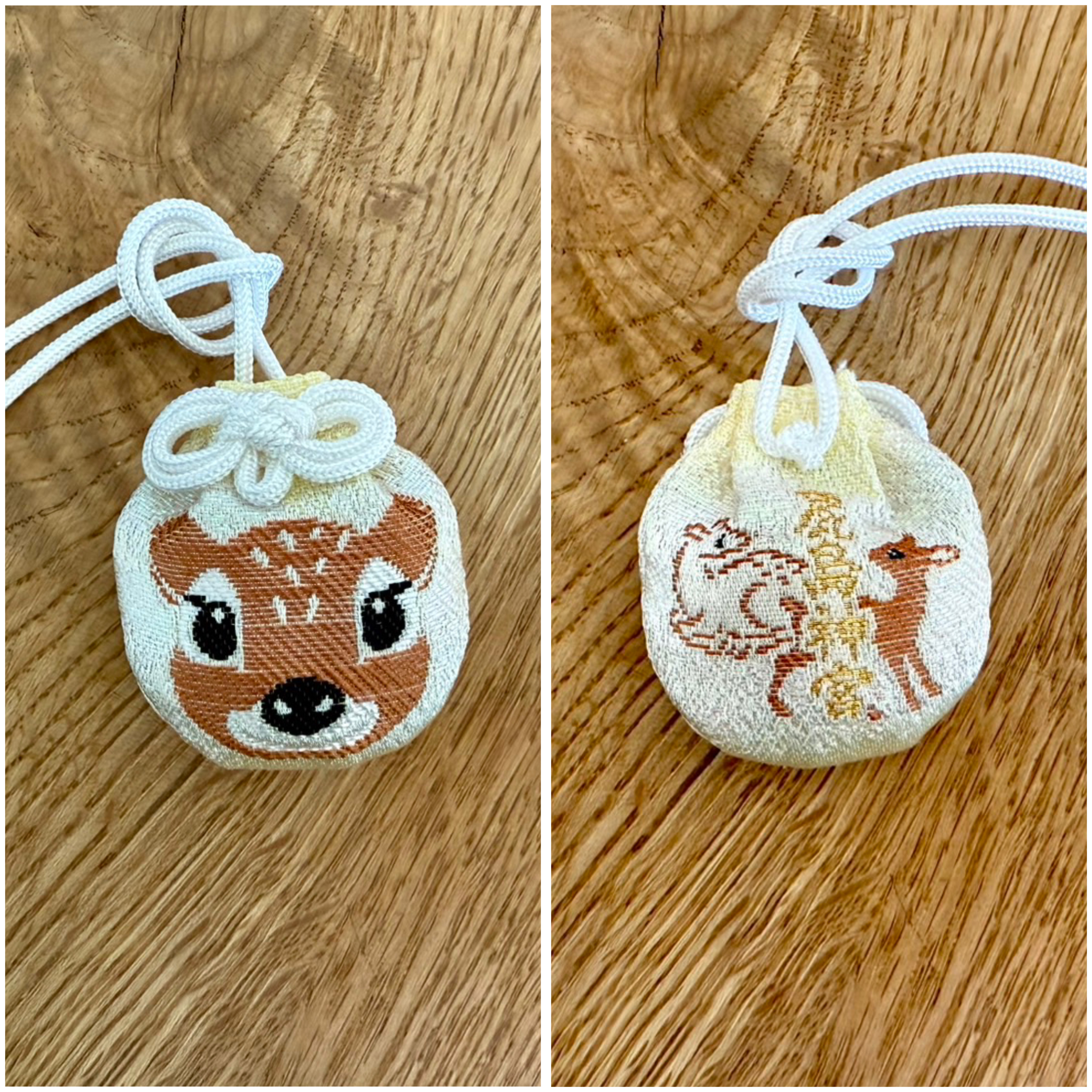 こちらも茨城県にある鹿島神宮のこども守。鹿島神宮では鹿は神の使いとして崇められていて、数十頭の鹿が保護されています。にっこり微笑む鹿がかわいい小さめのお守りです。