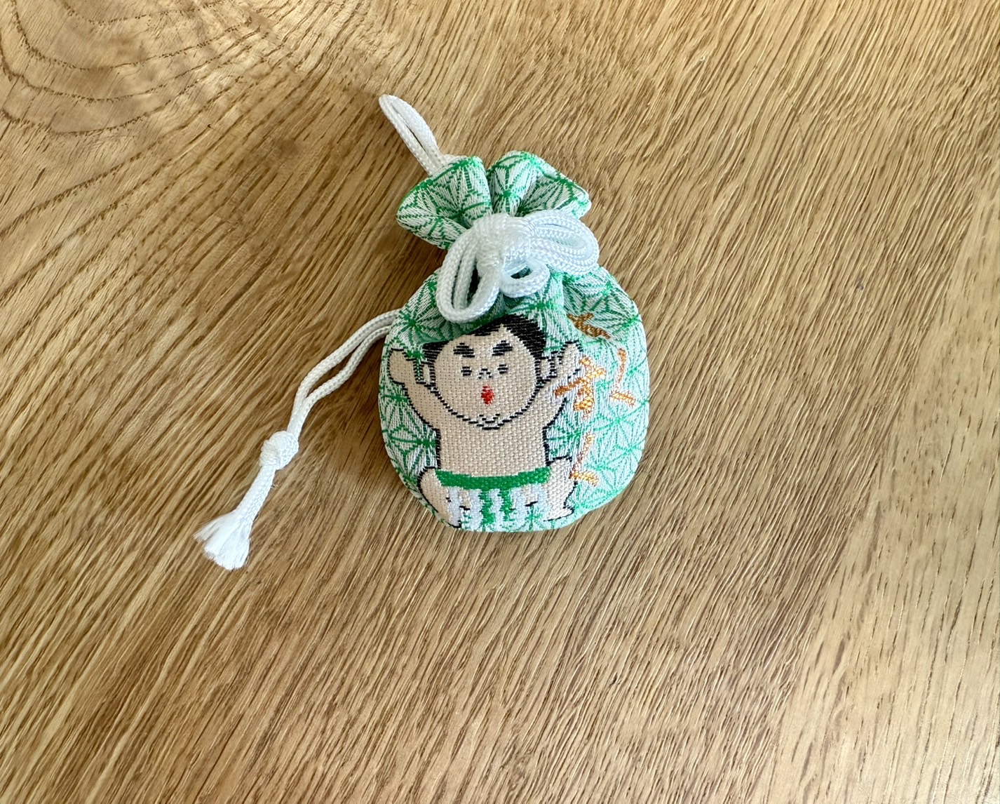 力士のデザインが目を引くお守りは、東京都にある世田谷八幡宮の「すくすく御守」