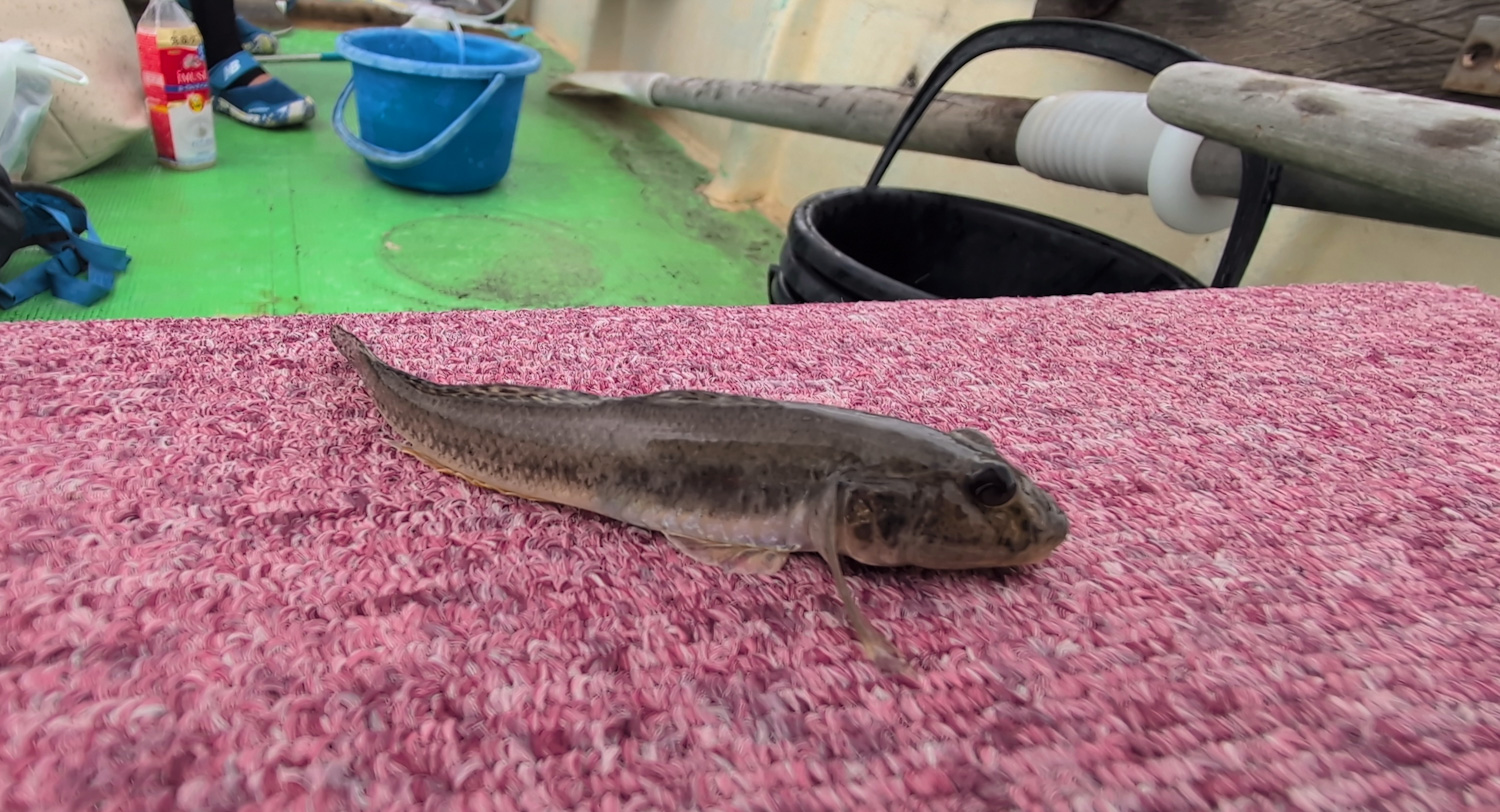 この時期のハゼは10cm前後、大きいもので15cmないくらいですが、食いつくと軽くグン!と竿に振動が来るので分かります。早い時は、餌が底に着いてすぐに釣れちゃいます。