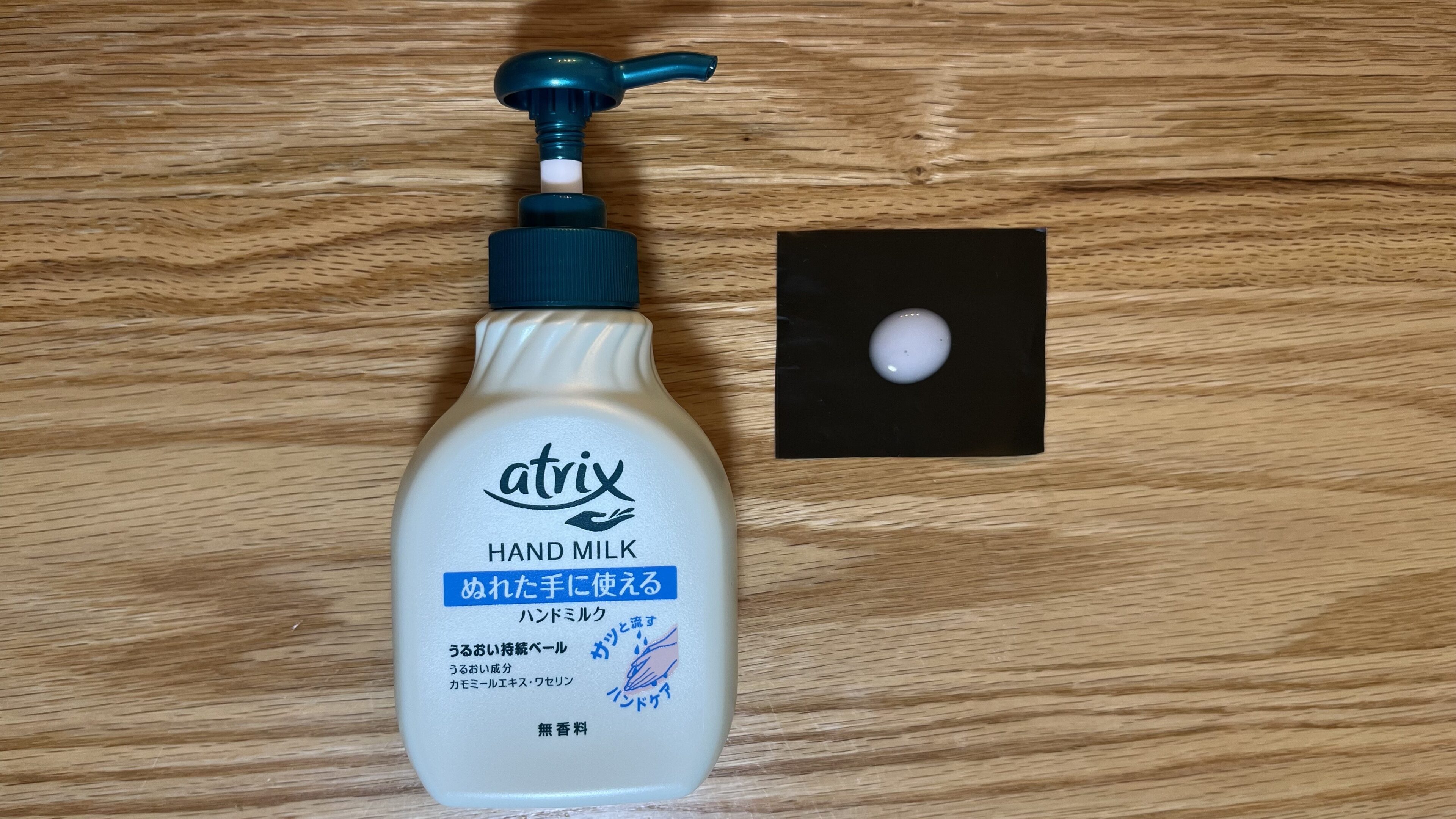 花王の「アトリックス ハンドミルク」は手洗い後の濡れた手に使えるタイプのハンドケア用品です。
