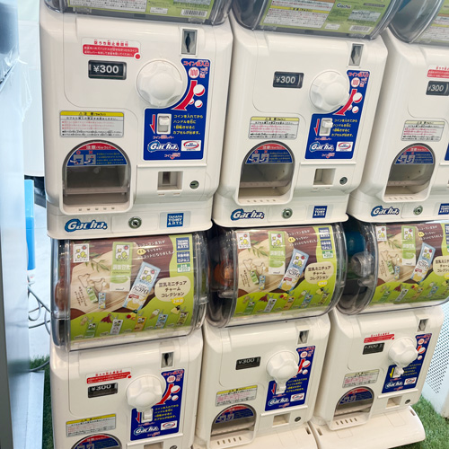 屋外の賑わいに対し、サザンテラスの向かい側のサザンタワーエントランスは室内の飲食スペースとして利用できました。ここには、サンリオキャラクター「HAPIDANBII(はぴだんぶい)」とコラボしたフォトスポットや、豆乳チャームが当たるガチャポンも設置されており、子どもたちは写真撮影やガチャポンを楽しんでいました。