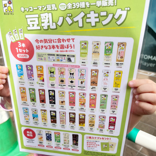 クリアファイル付きで3本セット356円(税込)というお得さも魅力で、珍しい豆乳をGETでき、親子で大満足の体験となりました。