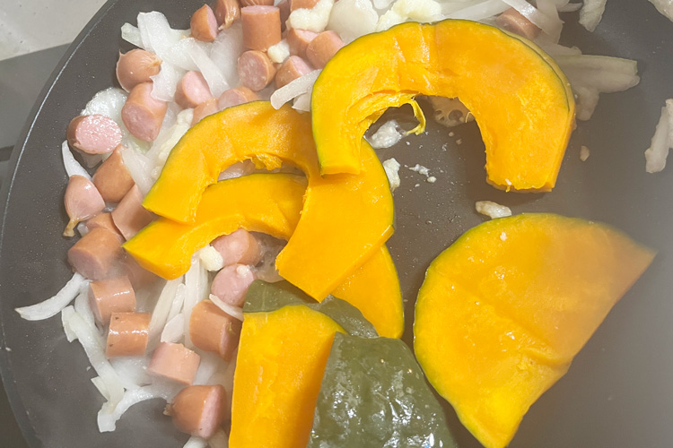 帰宅後、早速豆乳を使った料理に挑戦し、カボチャがあったので牛乳の代わりに豆乳を使ったカボチャグラタンを作ってみました。