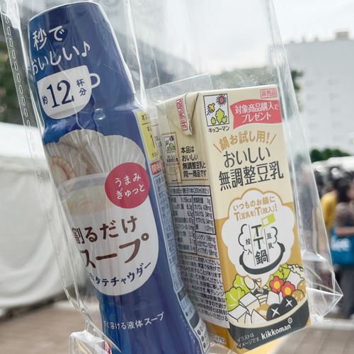 さらに、入り口では来場者特典として、豆乳(250ml)と割るだけクラムチャウダースープの素、お茶漬けの素を家族分いただきました。参加するだけでお得な気分になれました!