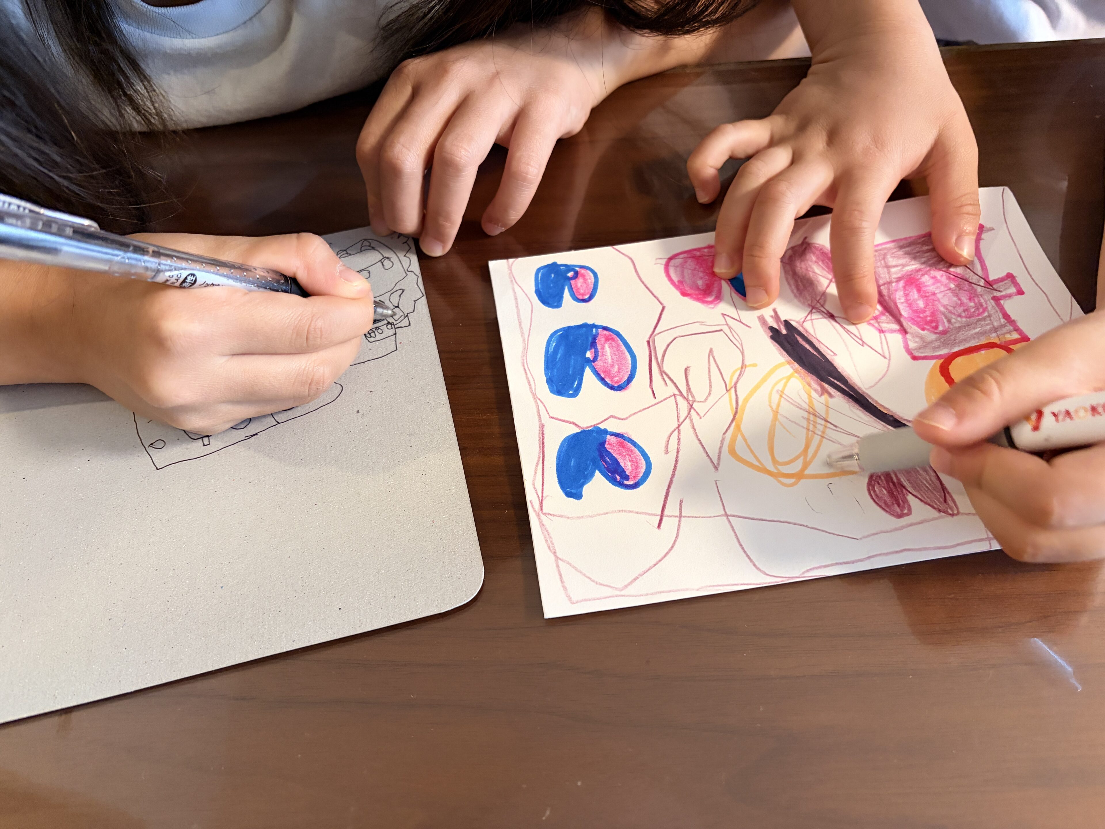 さらにその横で、幼稚園児の娘たちが「見て~!」と呼んだり、ケンカが始まったり。手や気持ちが分散して、どうしても「一緒にじっくり机に向かう」時間は減りました。