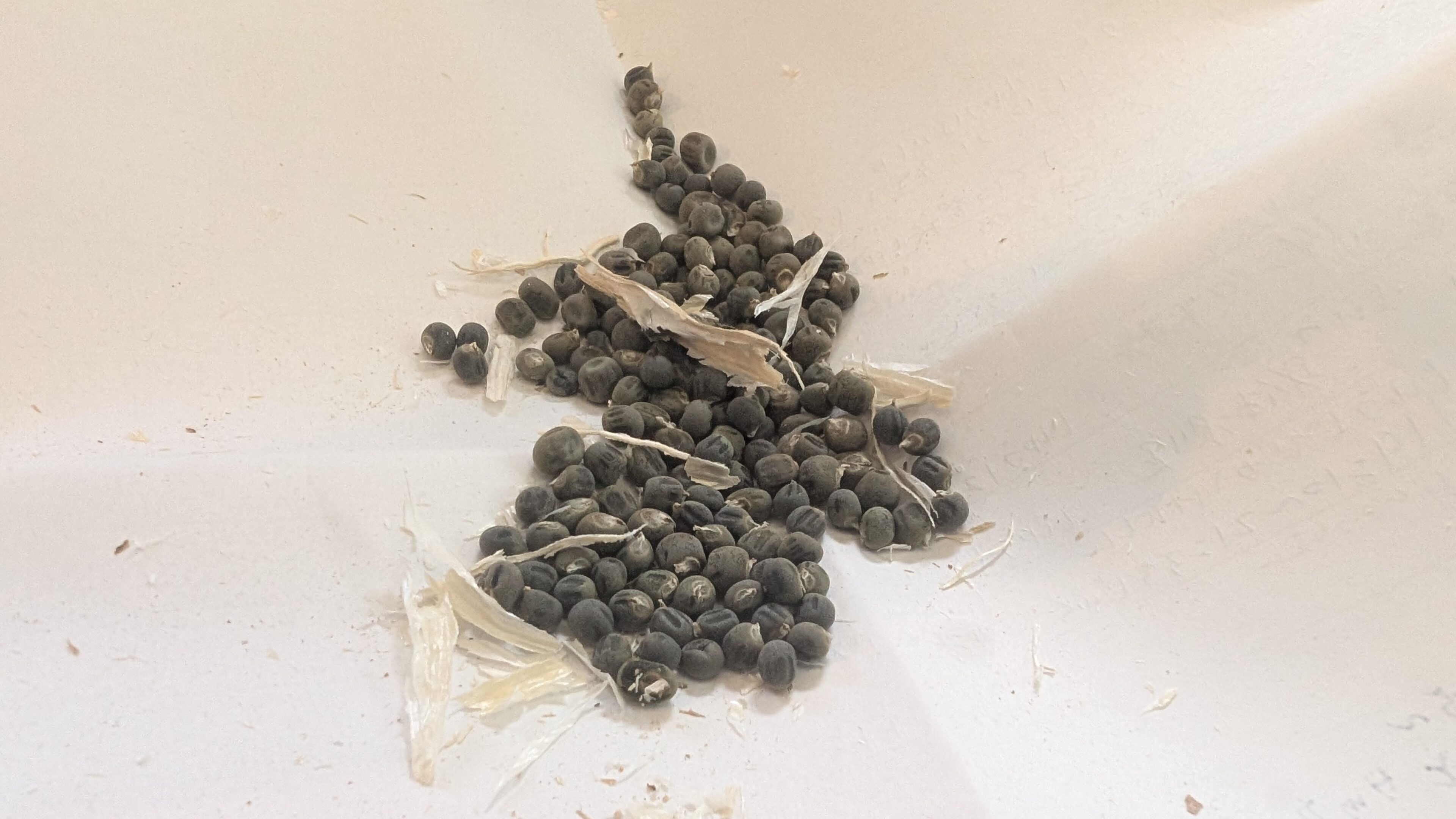 中から種を取り出し、「オクラが成長したらカラカラになって中の種は黒くなるんや~!」と驚いていました。笑