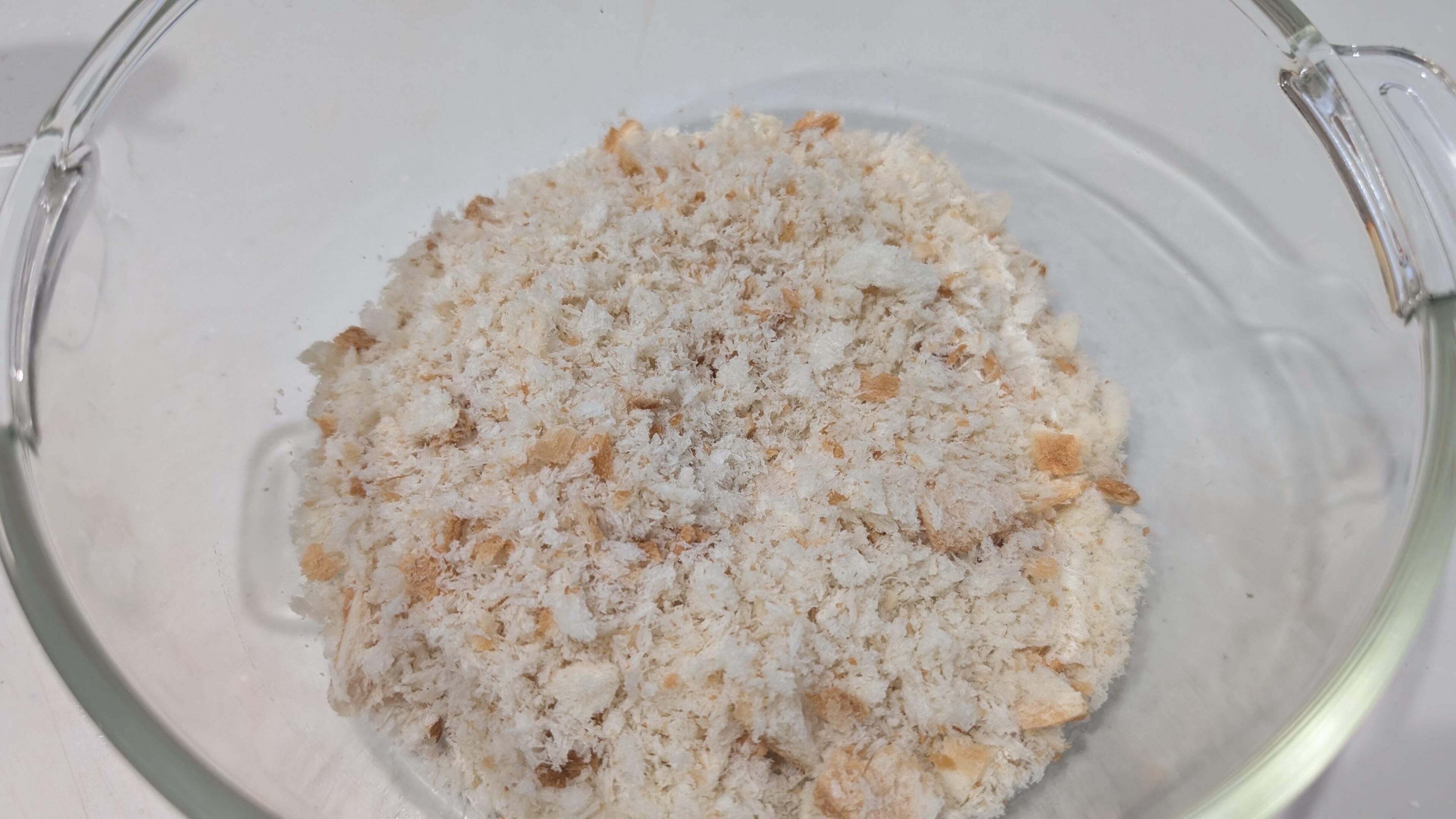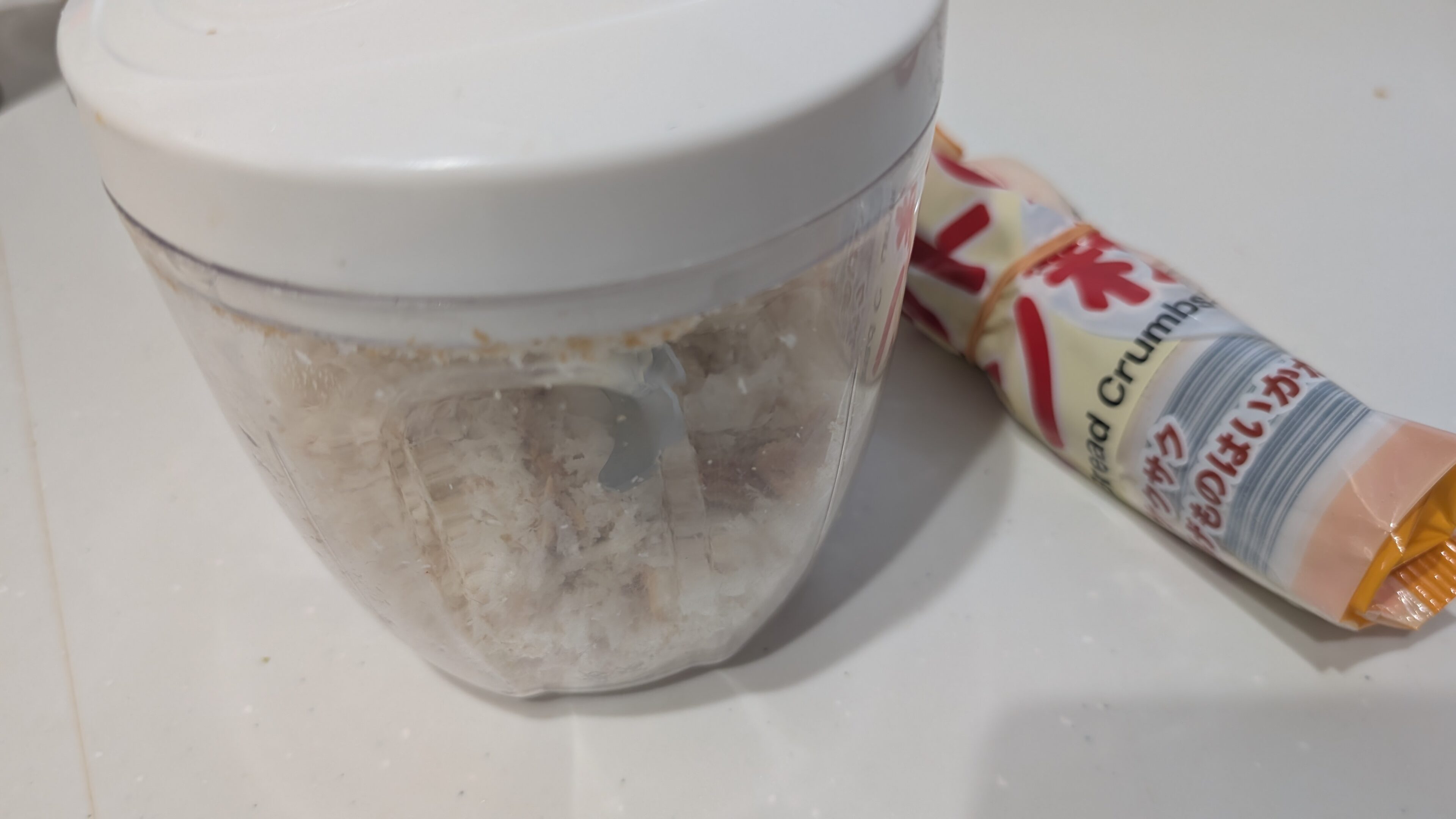 これまではパン粉がないと気づいたとき、冷凍のパンを大根おろし器で削ってパン粉を作っていました。