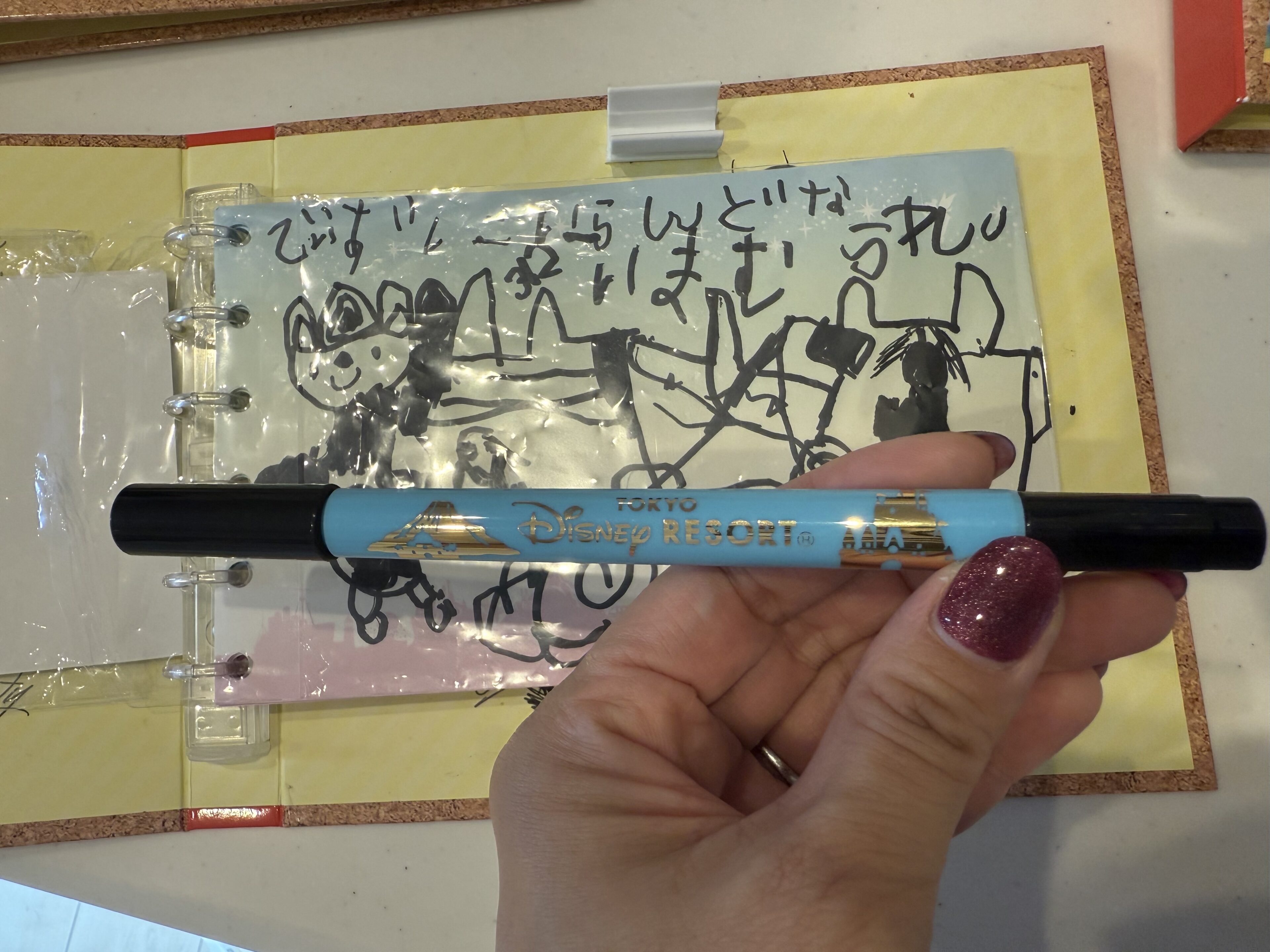 サイン帳としてもちろん使えますが、我が家はこちらに子供達にディズニーの思い出のお絵描きをさせたり