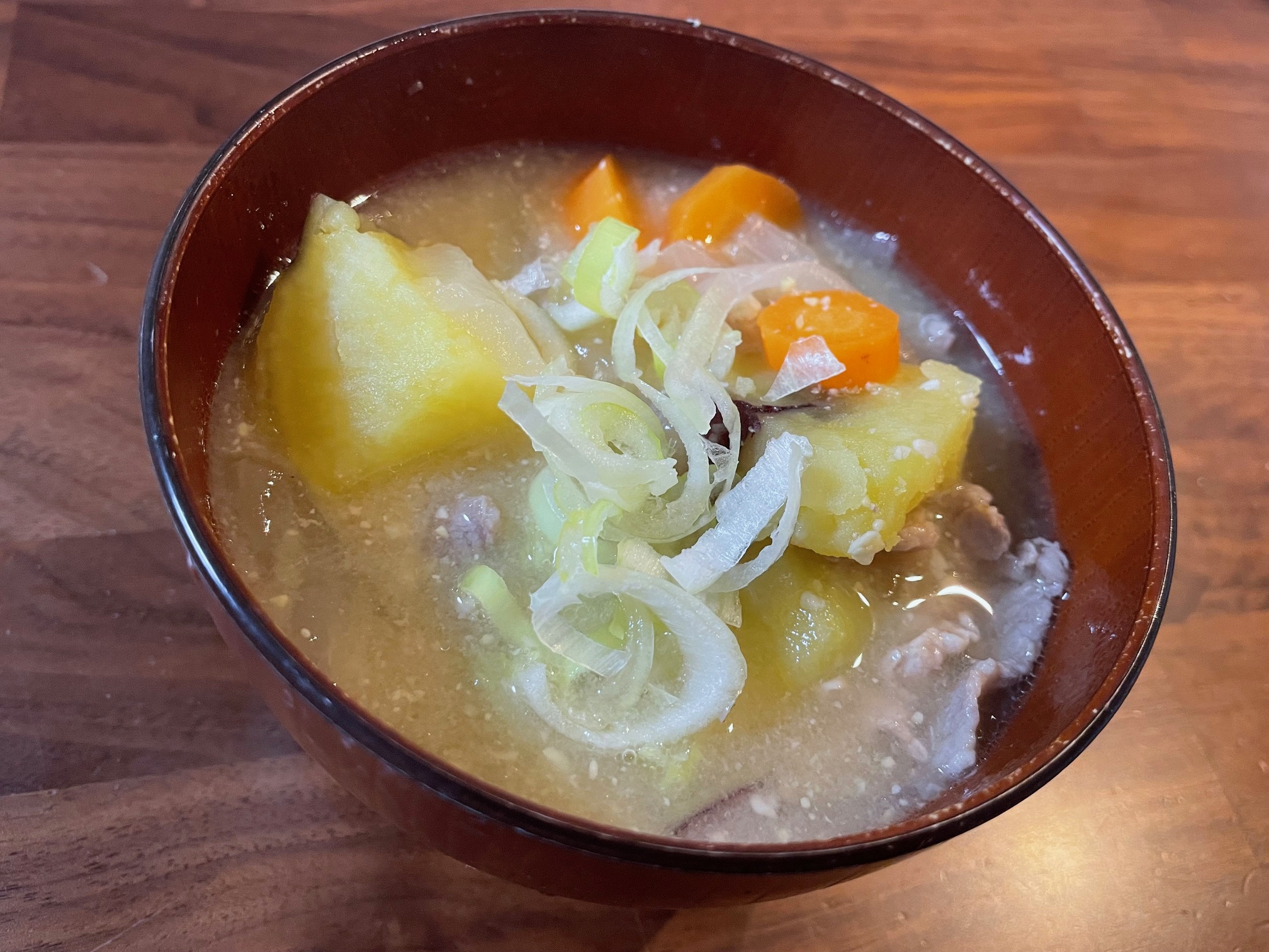 豚汁は、じゃがいもの代わりにさつまいと舞茸を加えると、いつもの豚汁が一気に秋の味に変身。