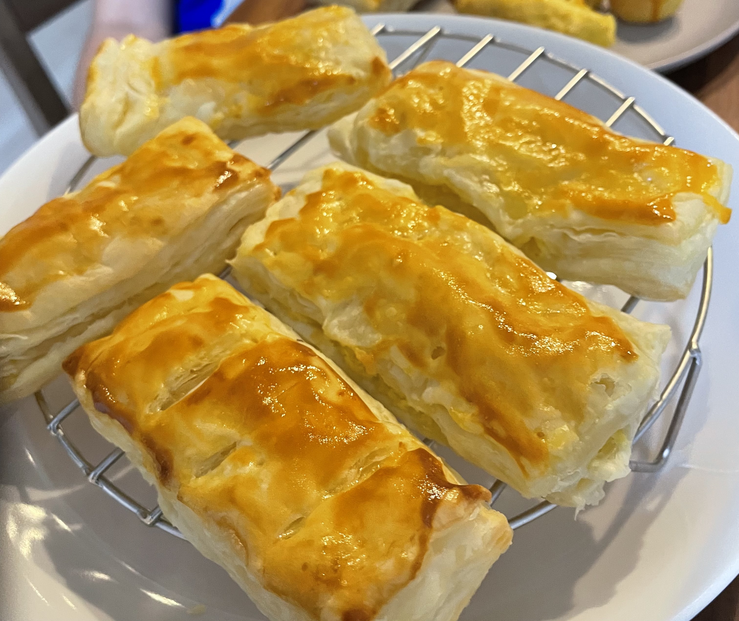少し飽きてきたら、成形前のタネをパイ生地で包んで焼くだけで、「スイートポテトパイ」に早変わり!
