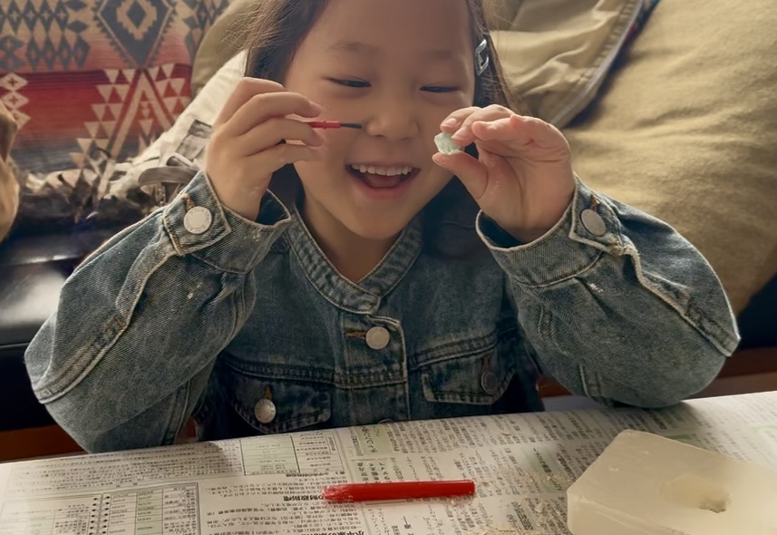 今回は予定を変更して、キラキラ好きな娘の心をくすぐった「宝石発掘体験キット」に挑戦してみました。