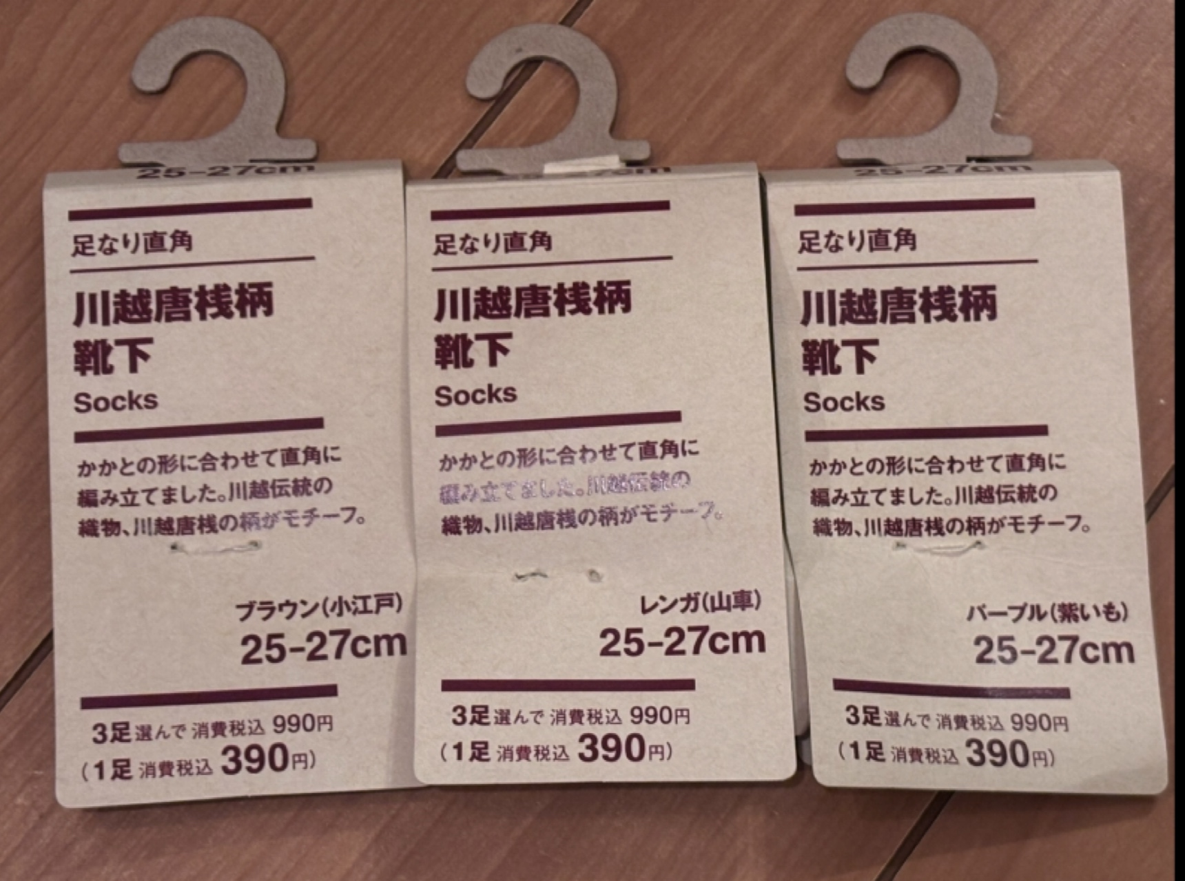 今しか買えない川越限定柄!【無印良品】世界中で埼玉県川越の2店舗だけで販売中の靴下