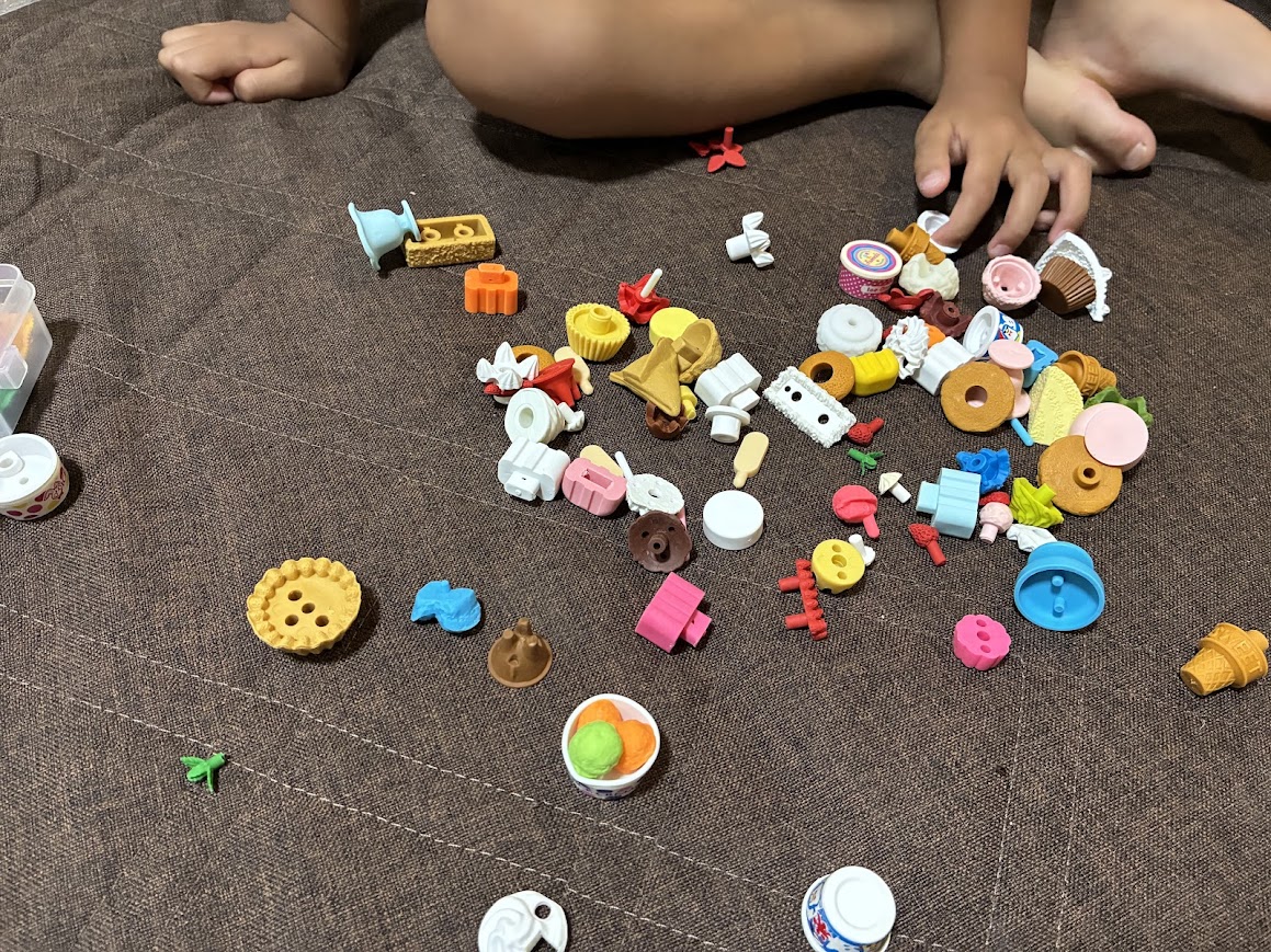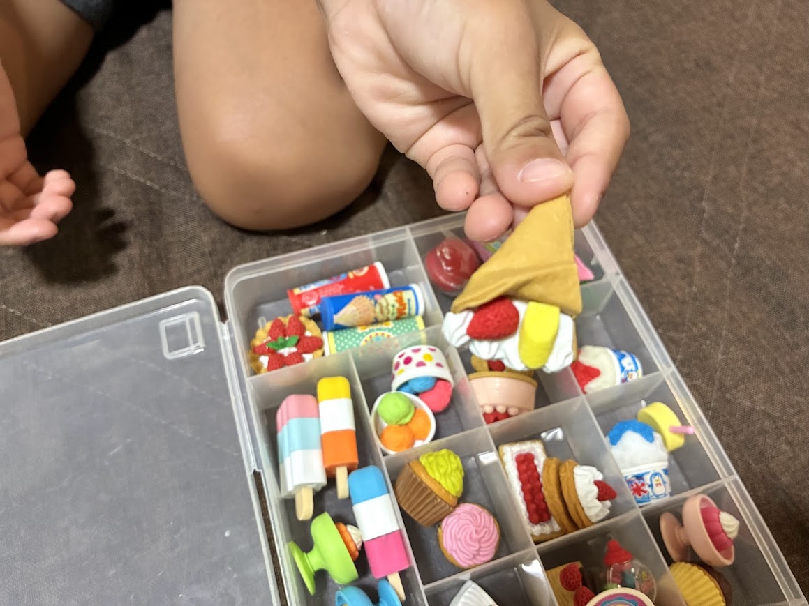 わたしはおもしろ消しゴムをコレクションしていて、子どもたちはその消しゴムの「パーツをバラバラにして組み立てる」という遊びをよくしていたのです。