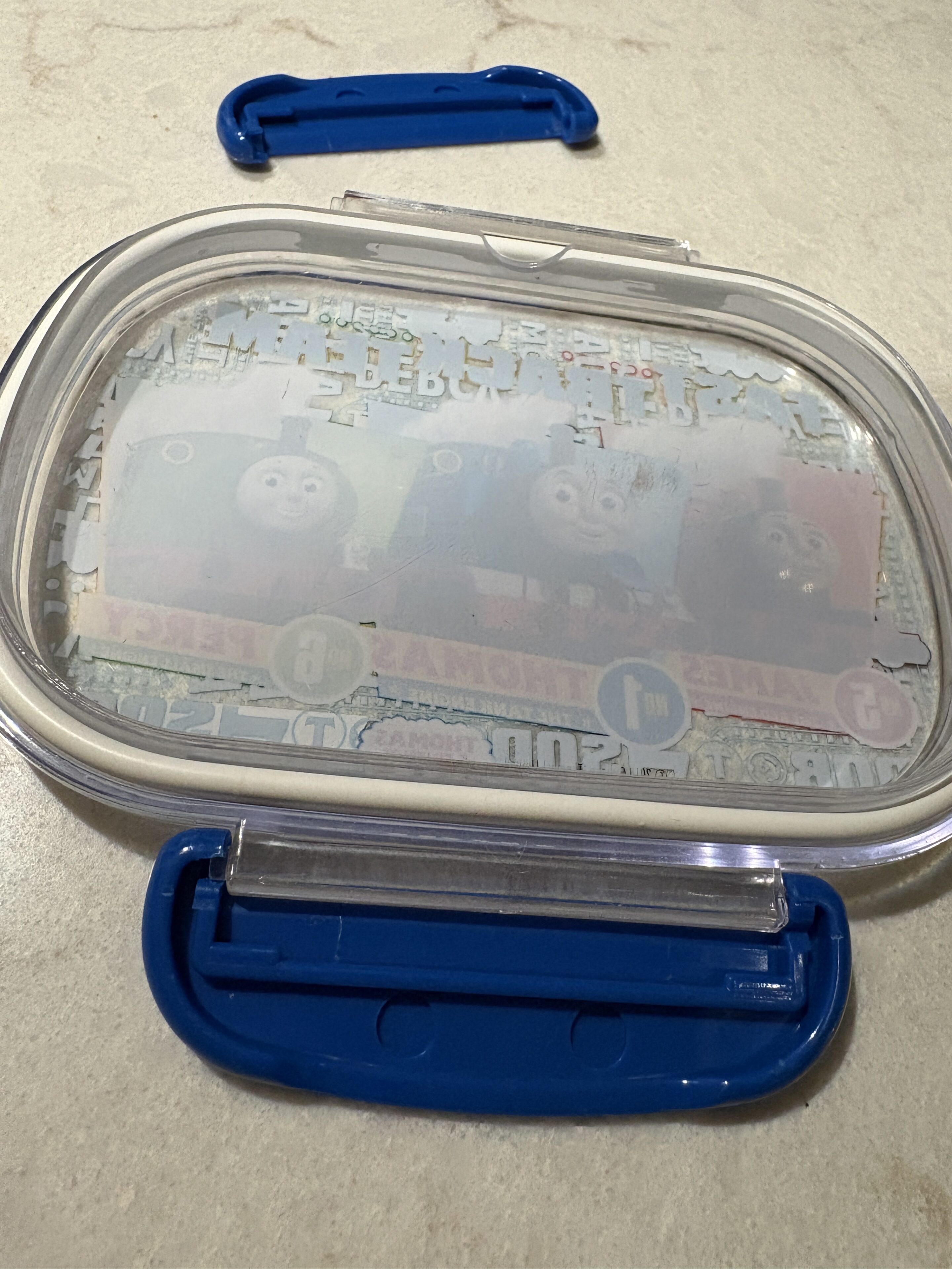 お弁当箱の蓋を破壊してきた息子。パーツが欠けたのでお弁当箱は新調となりました(トホホ)先生に開けてもらったと言っていましたが、真相は闇の中…(笑)