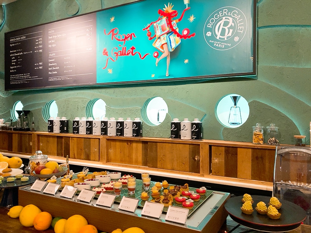 ちょうどいま、フランスのフレグランスメゾン「ロジェ・ガレ」とコラボレーションしていて、店内も華やかな雰囲気に飾られています。