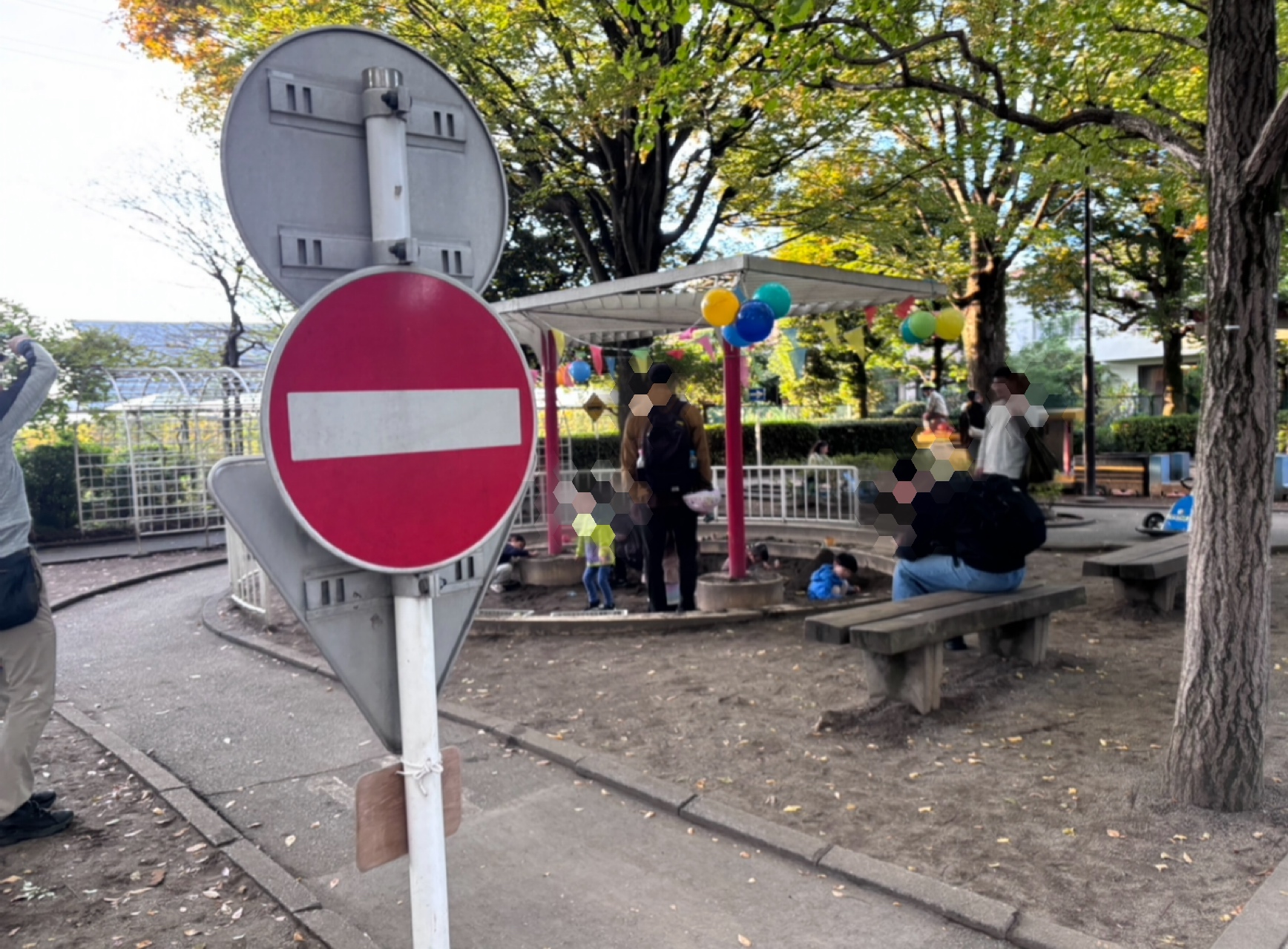 横断歩道を信号無視して渡ると、大人でも公園のスタッフに注意されます!