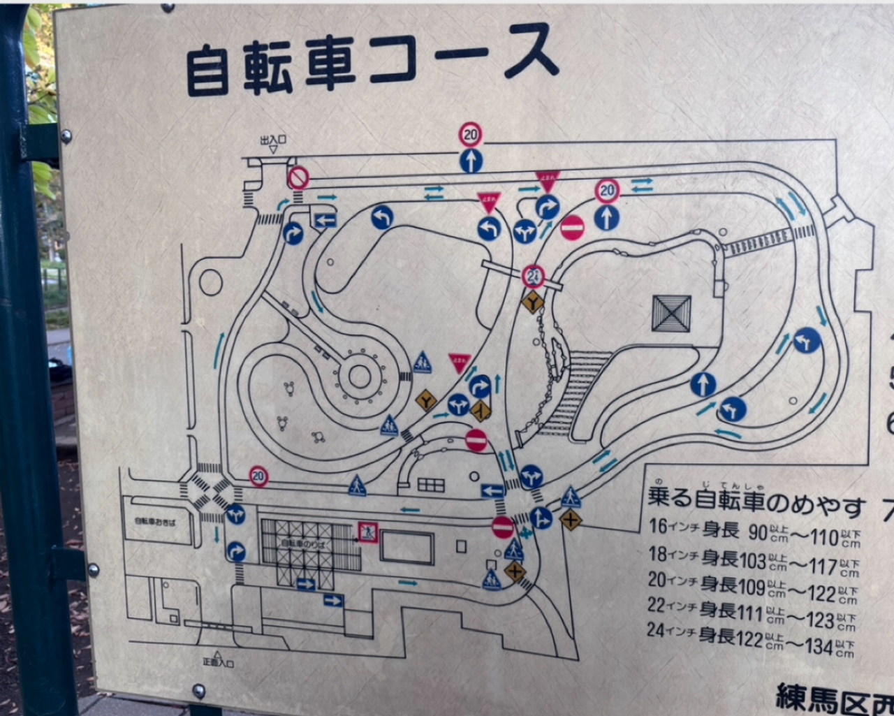 自転車はインチごとにそれぞれ分けて置かれていて、補助輪あり・補助輪なし、かなりの台数があるのと、大泉交通公園には14インチから24インチまで置かれています。
