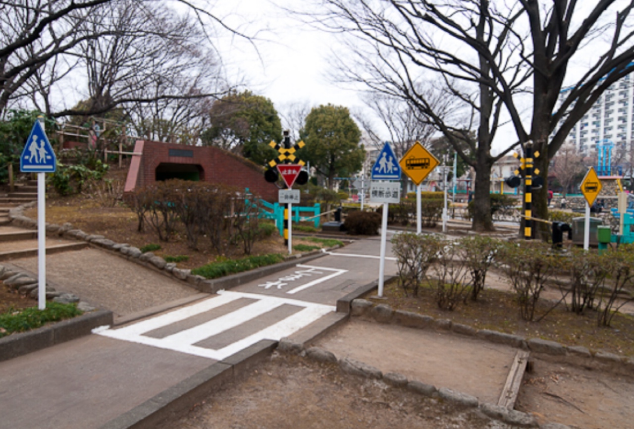 交通公園とは、信号機や横断歩道などの交通施設が公園内にあって、子供たちが楽しみながら交通ルールやマナーを学べる公園。