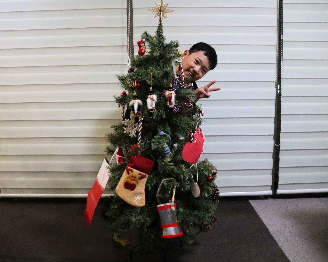 家に帰って早速ツリーを出し、息子と一緒に飾りつけ。