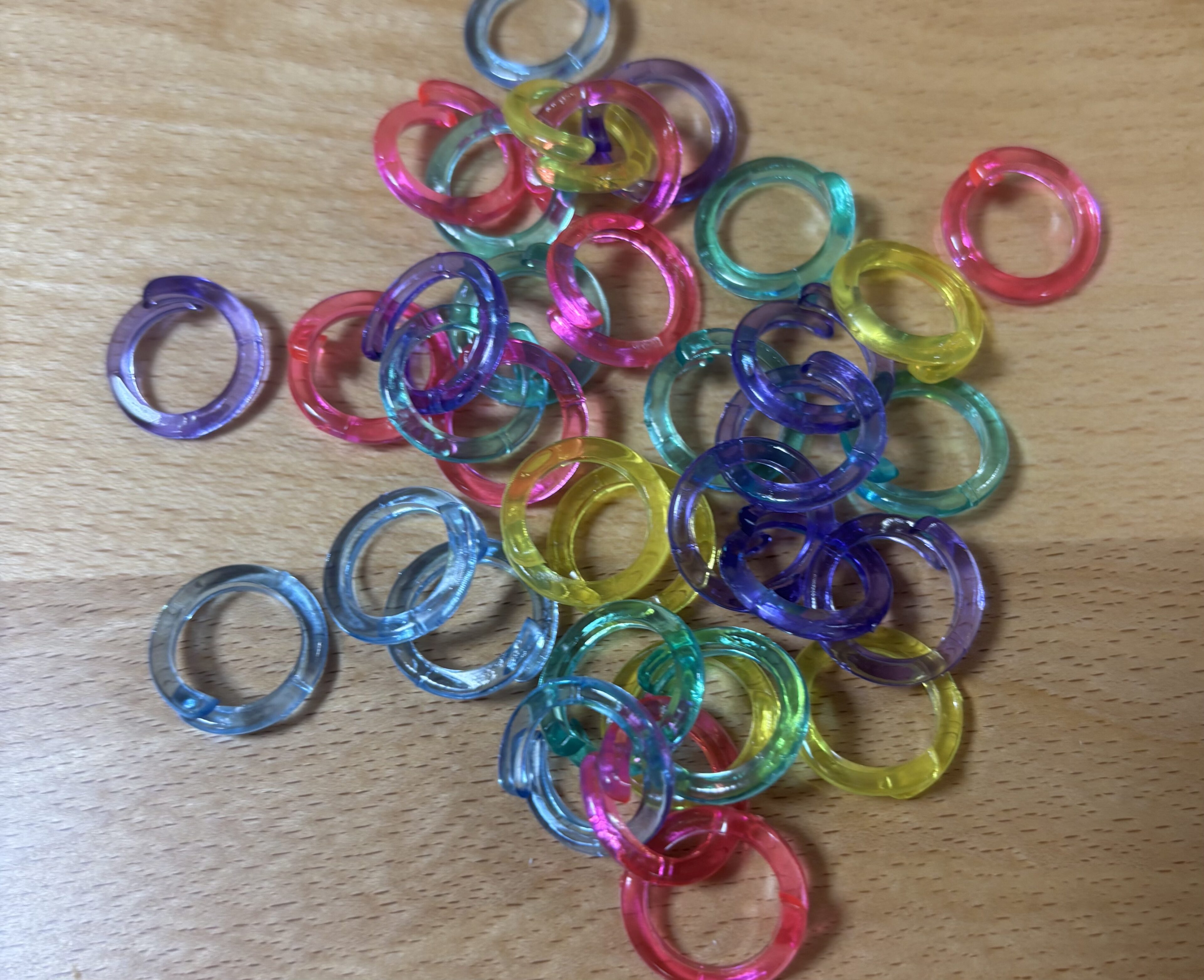 最初は紐で止めようかと思っていたのですが娘が普段遊んでいる「チェーンリング」がちょうど良いかもしれない!と思い通してみました。