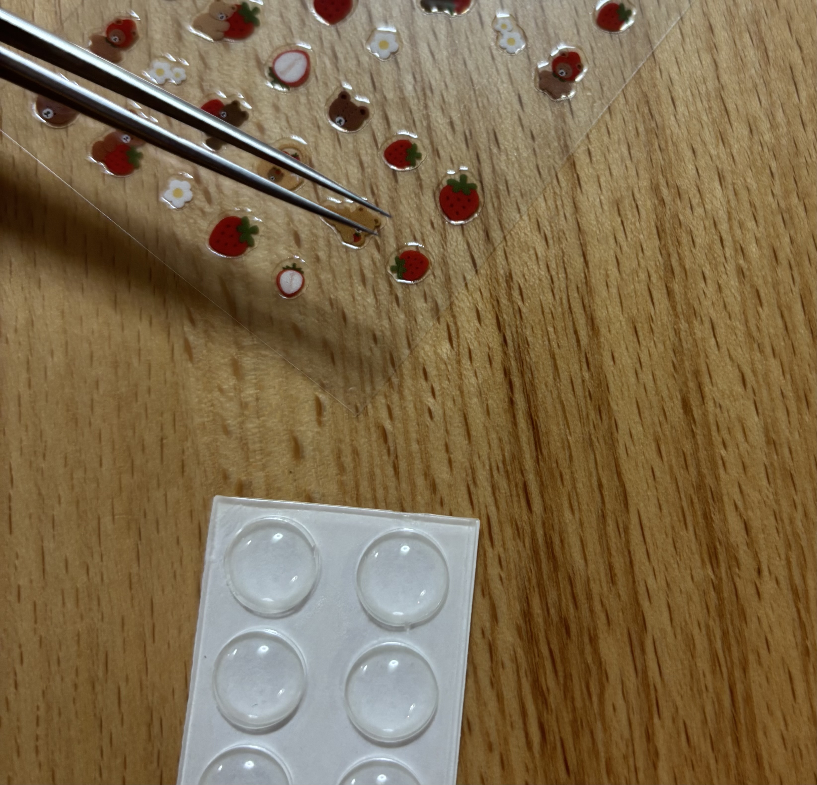まずはクッションゴムとネイルシールを組み合わせたぷっくりシールを作っていきます。