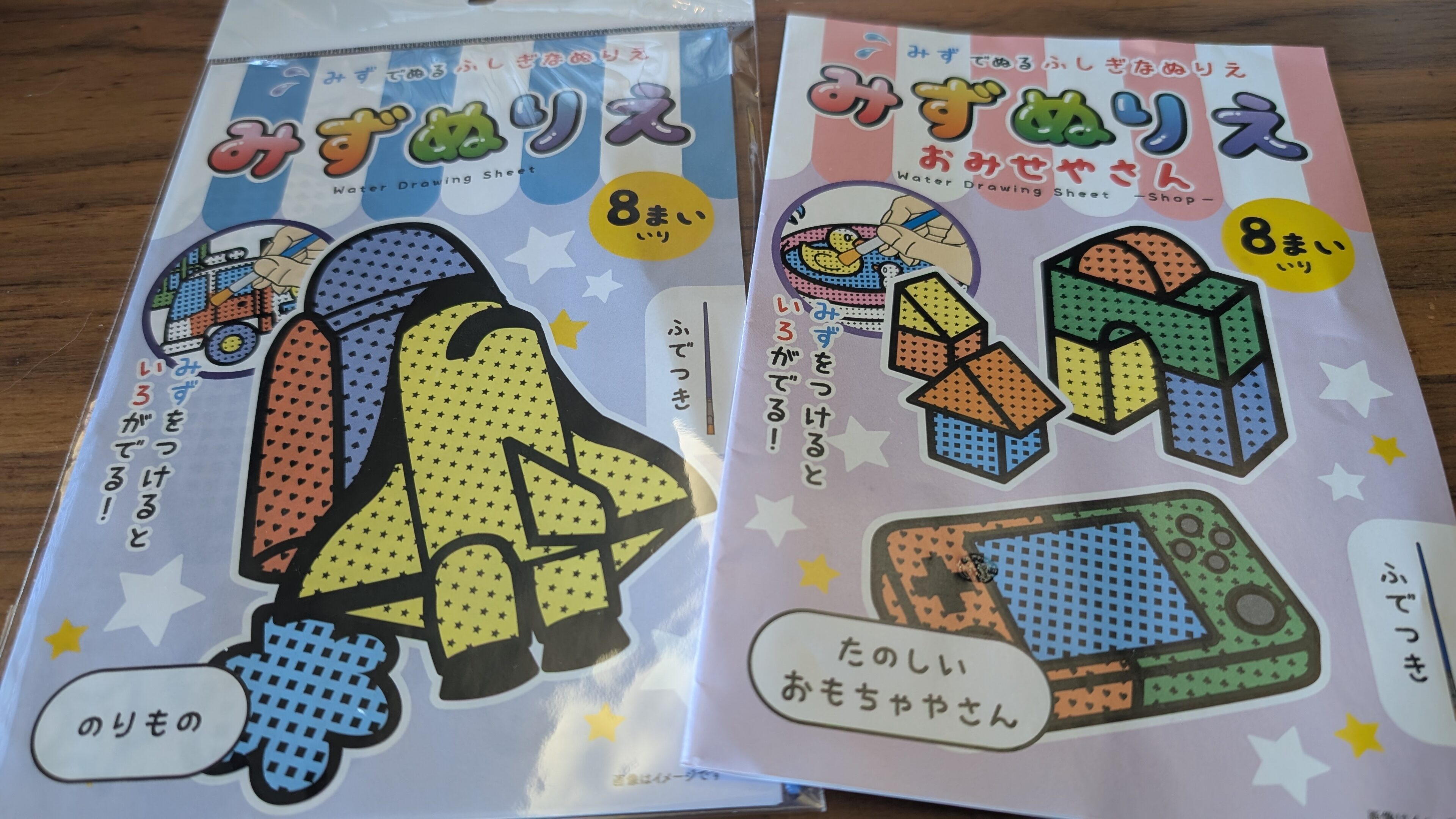 母が「え、これなつかし…」と決めたものは「みずぬりえ」。