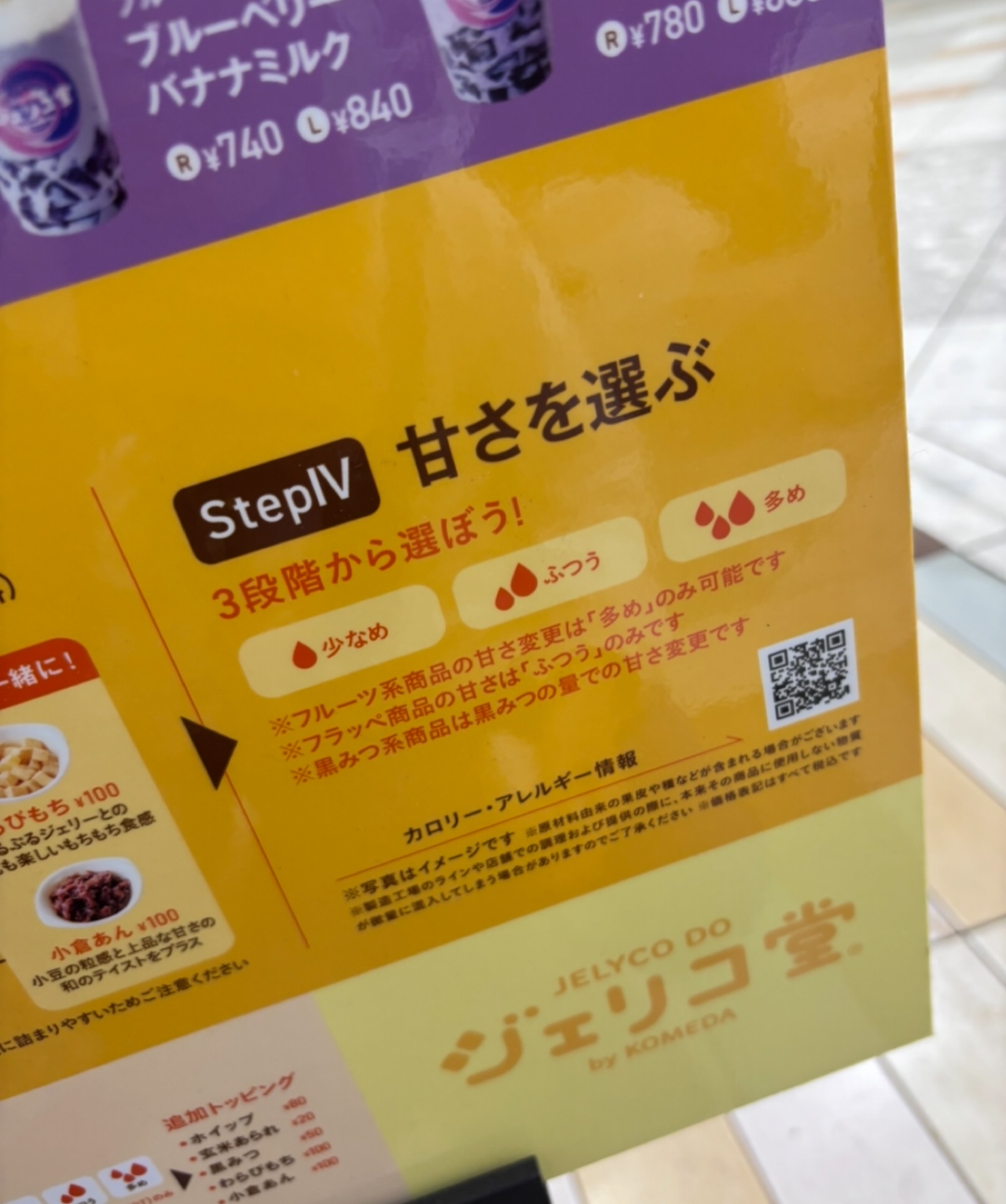 ジェリコ堂ではワンハンドで、ストローで飲みやすいように、「ちゅるっと、ぷるるん」とした食感にこだわっているそうで、なるほど〜と納得。