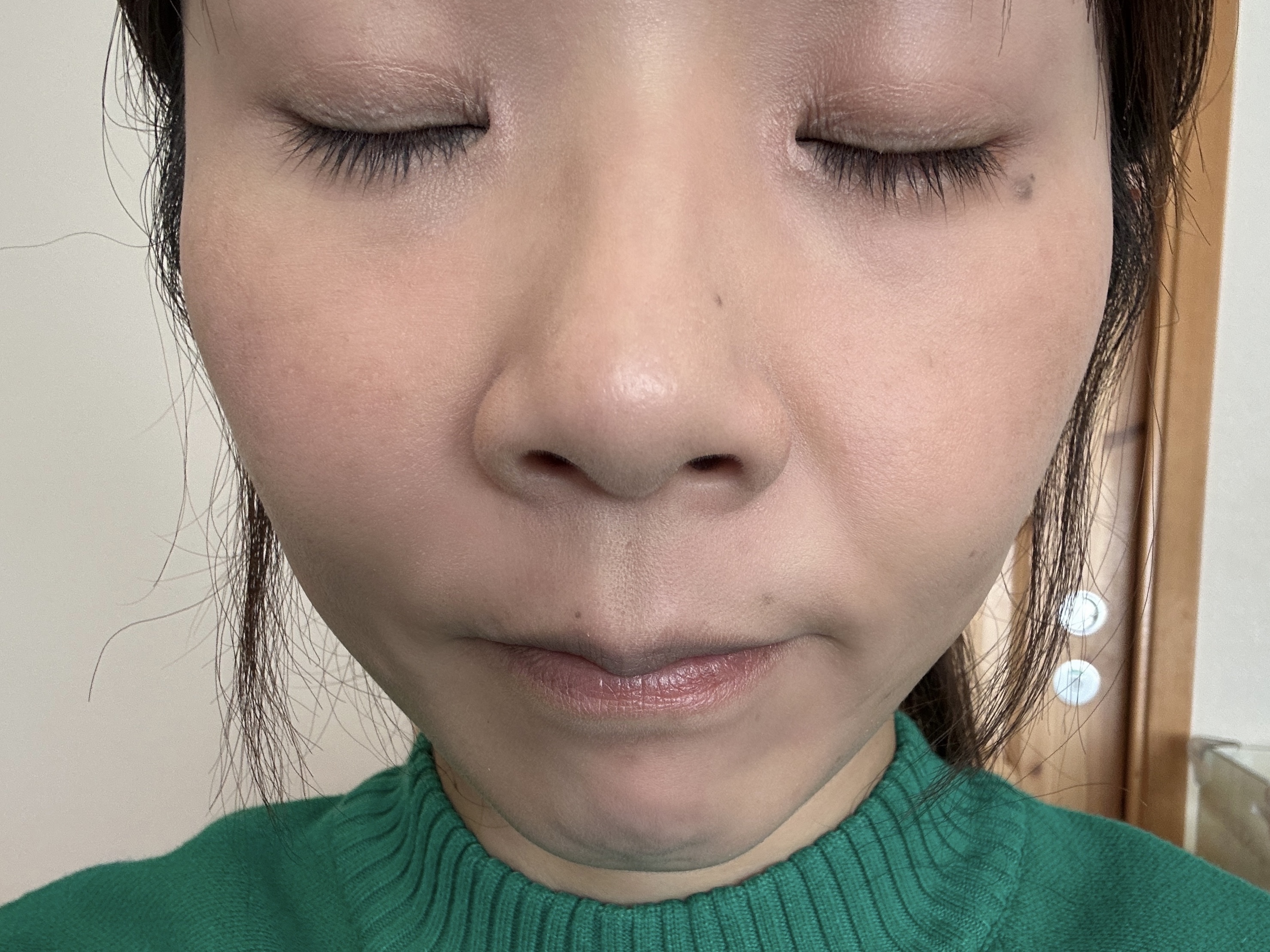 メロメロチークを使ってみた感想としては、色も可愛いのですが、保湿成分が入っているからか、チークを塗ったところが他の部分よりしっとりしている気がしました!