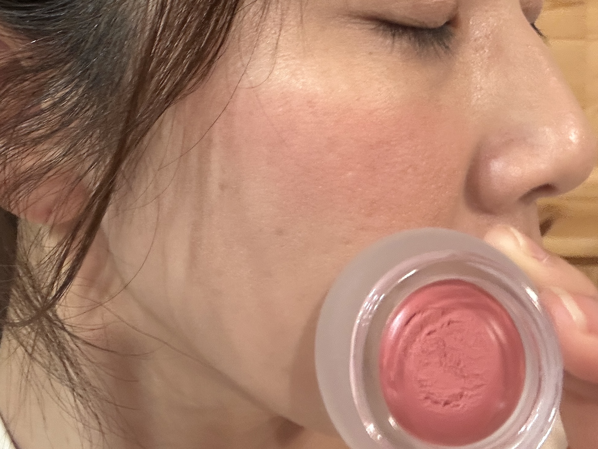 この商品は、チークもリップもマット系になるそう。今、水光肌ブームが一旦落ち着いて、マット〜セミマットメイクが人気ですよね。塗るだけでトレンドのメイクになりました!